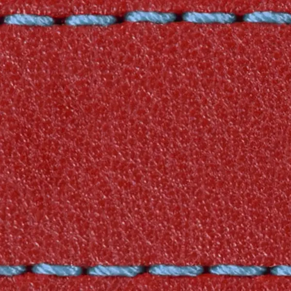 Element skórzany paska moVear C1 Czerwony szkarłatny, przeszycie/nić Błękitna. Części bez klamry.
