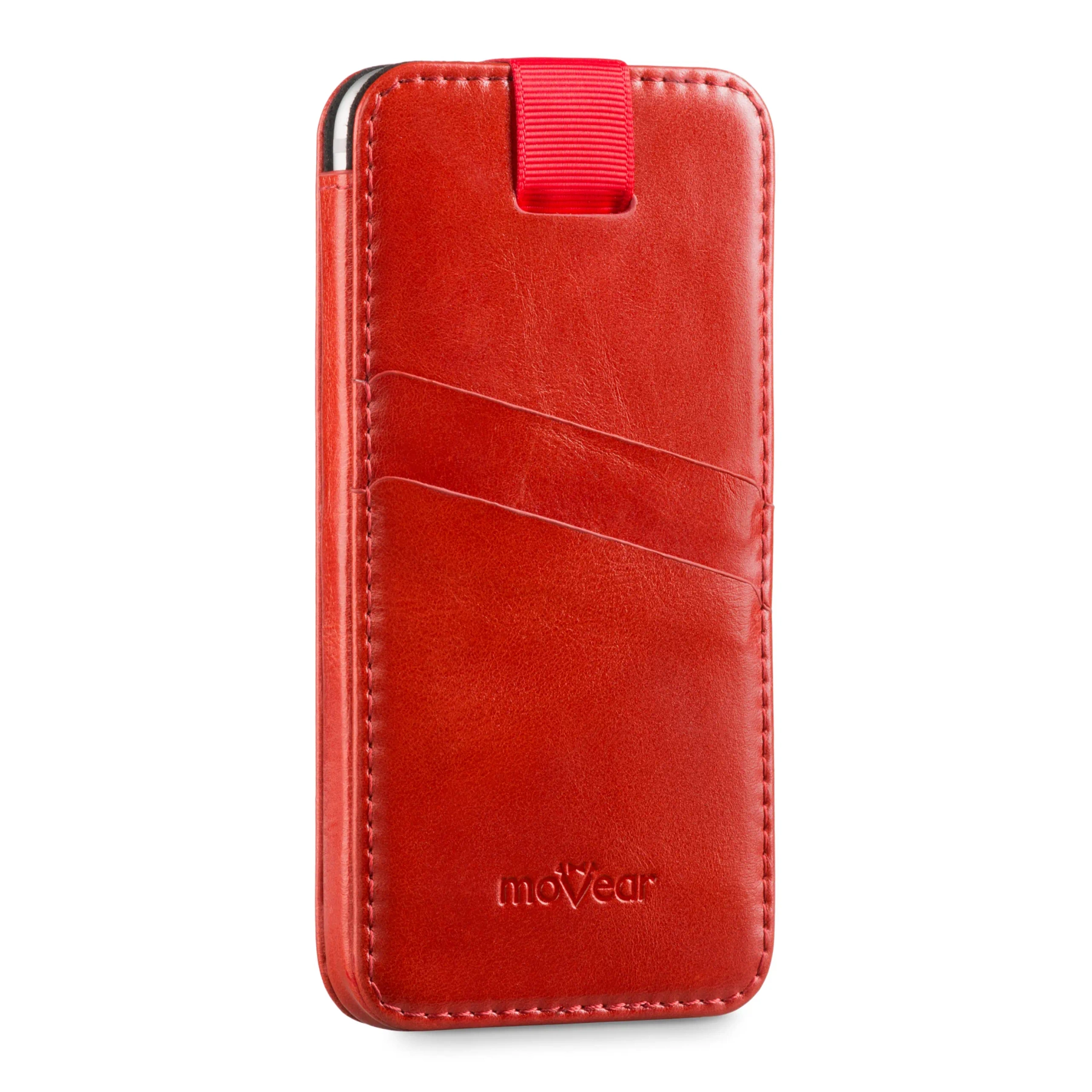 moVear pocketCase C+Skórzana wsuwka do Apple iPhone 13 Mini / 12 Mini / SE 2020 / 8 / 7 / 6 (0) | Skóra naturalna vintage, kolor - Czerwony.