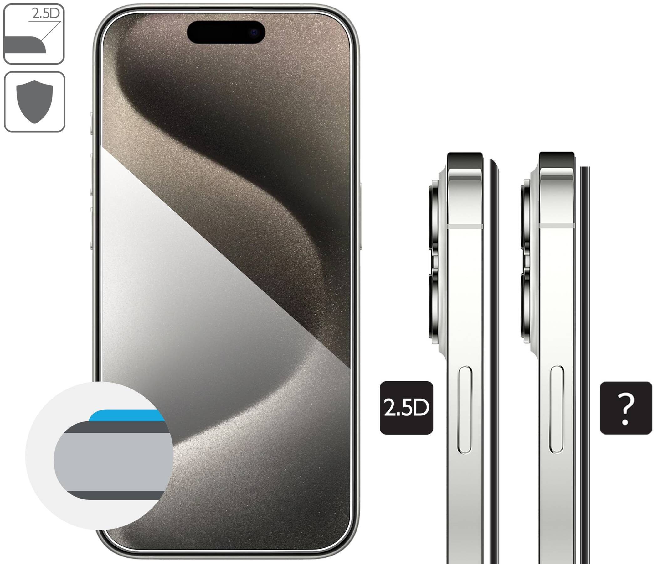 Zaokrąglone, wykonane w technologii 2.5D krawędzie, są bezpieczne dla użytkownika i bardziej odporne na uszkodzenia. Wygładzony brzeg szkła 9H wpływa również bardzo pozytywnie na komfort użytkowania na telefonie Apple iPhone 15 Pro / 15 (6.1").