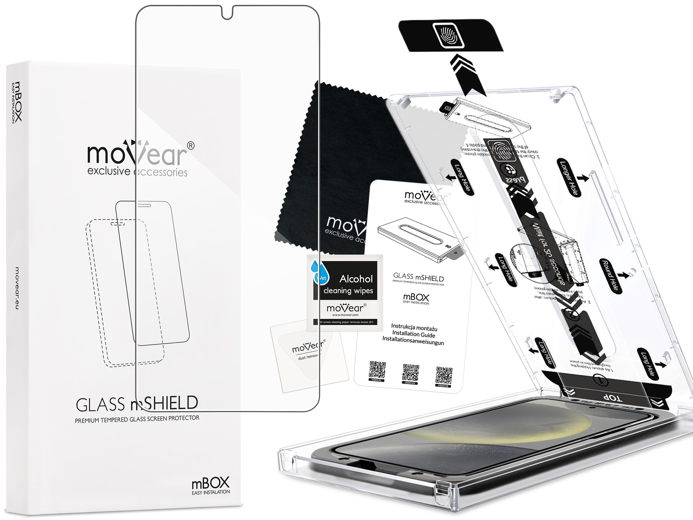 moVear mBOX GLASS mSHIELD 2.5DSzkło hartowane na Samsung Galaxy S25 / S24 (6.2"), z systemem łatwego montażu