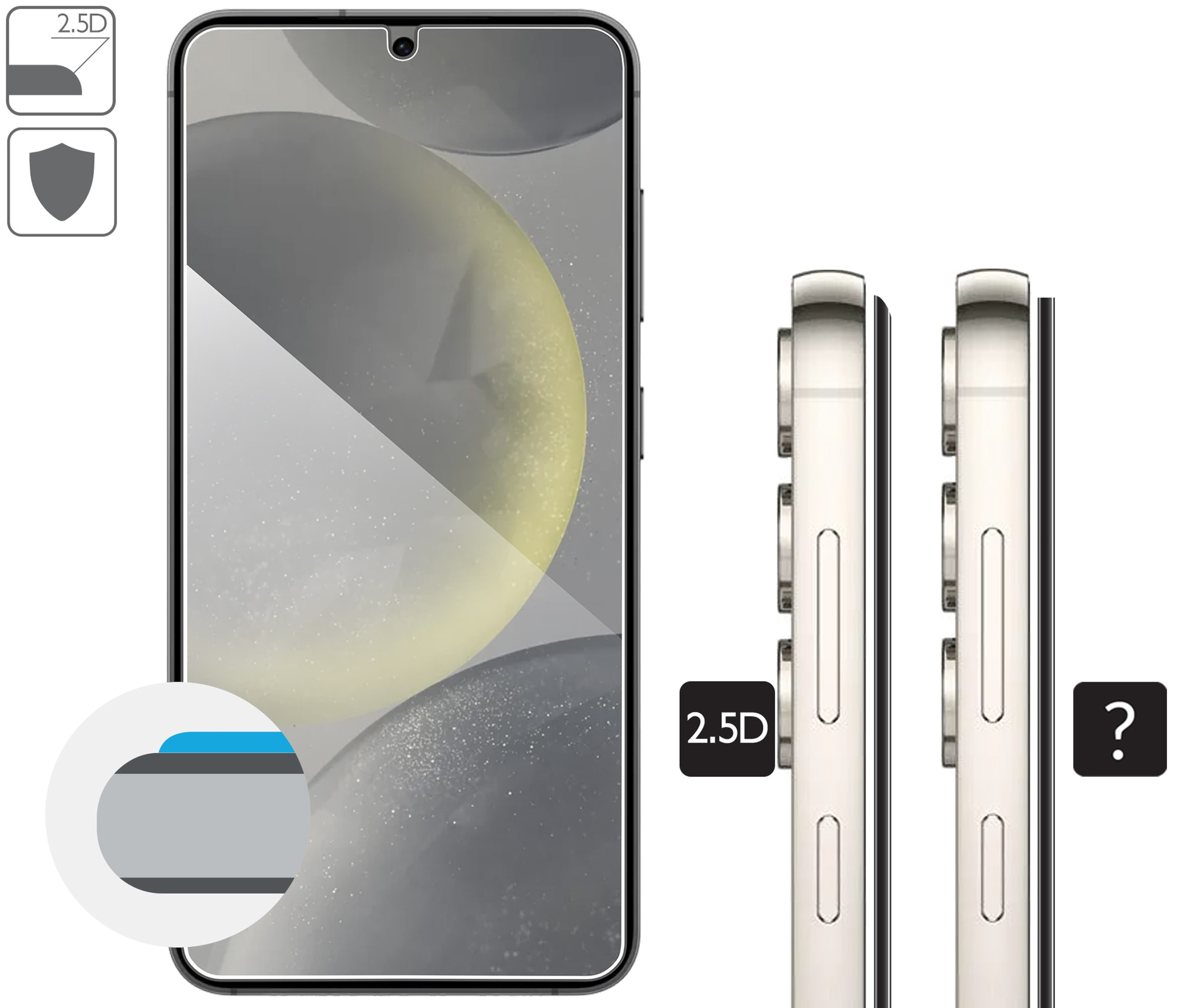 Zaokrąglone, wykonane w technologii 2.5D krawędzie, są bezpieczne dla użytkownika i bardziej odporne na uszkodzenia. Wygładzony brzeg szkła 9H wpływa również bardzo pozytywnie na komfort użytkowania na telefonie Samsung Galaxy S25 / S24.