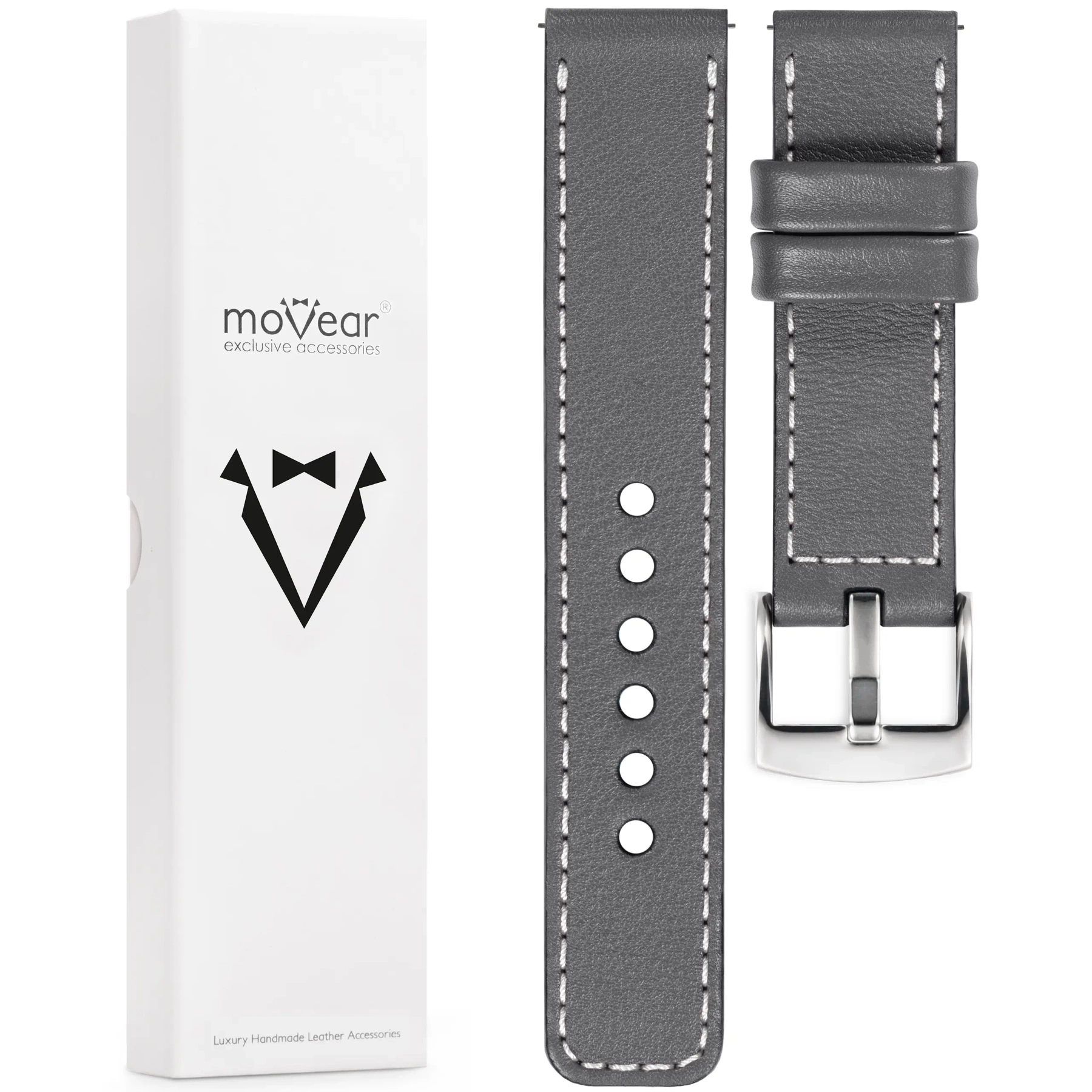 - 1 szt. moVear Prestige C1 - Skórzany pasek szerokości mocowania 21mm, kolor paska Szary, białe przeszycie
