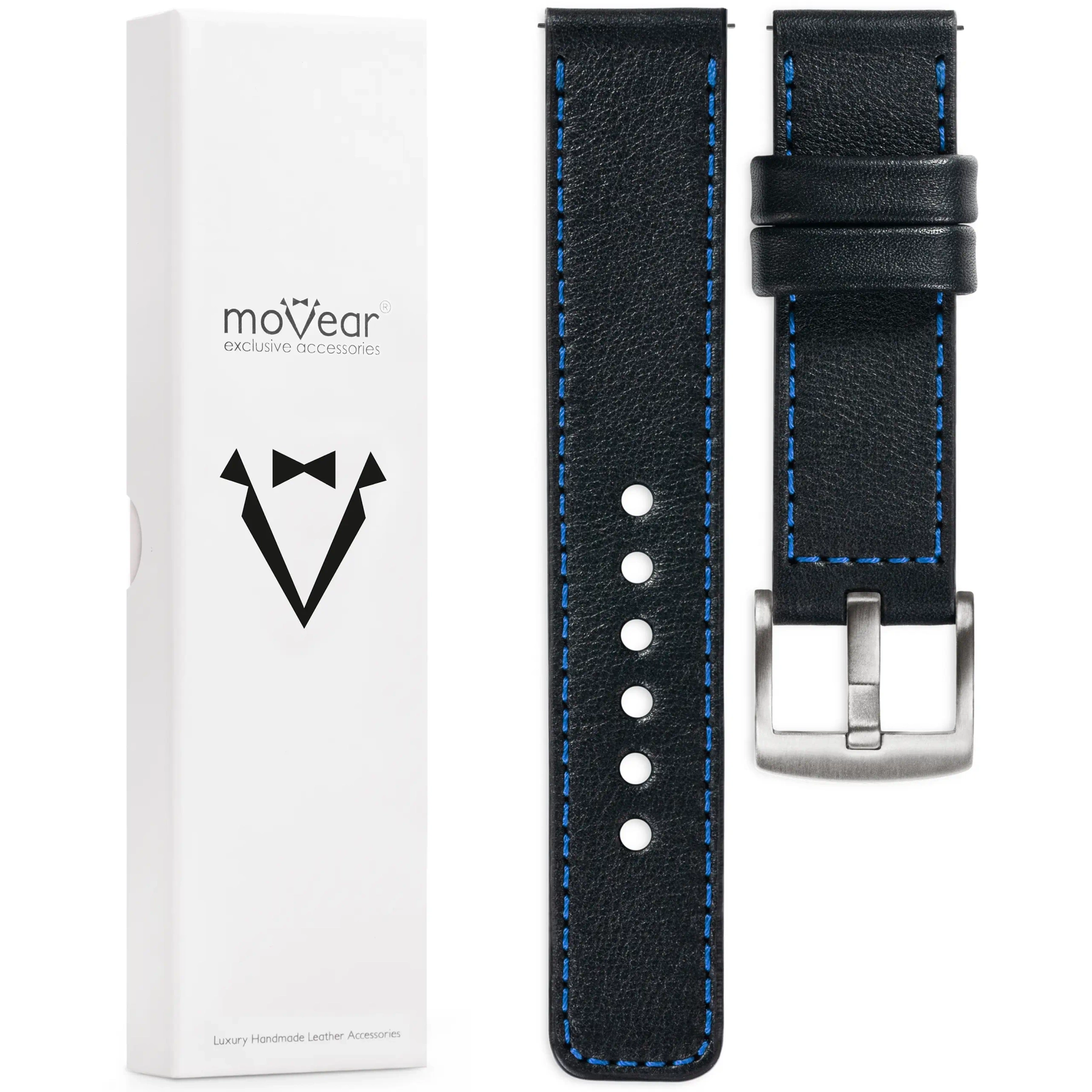 - 1 szt. moVear Prestige C1 - Skórzany pasek szerokości mocowania 21mm, kolor paska Czarny, niebieskie przeszycie