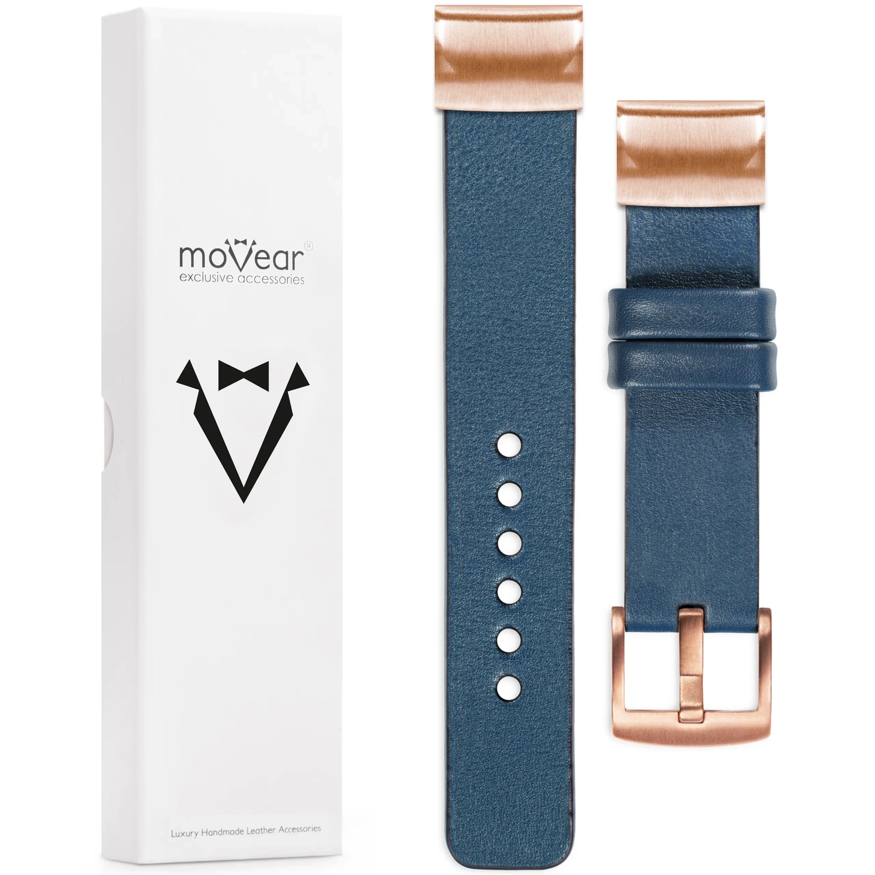 moVear Prestige S1 | Skórzany pasek do Garmin QuickFit 20mm (Fenix / Instinct - 43/42/40mm) | Niebieski Jeans