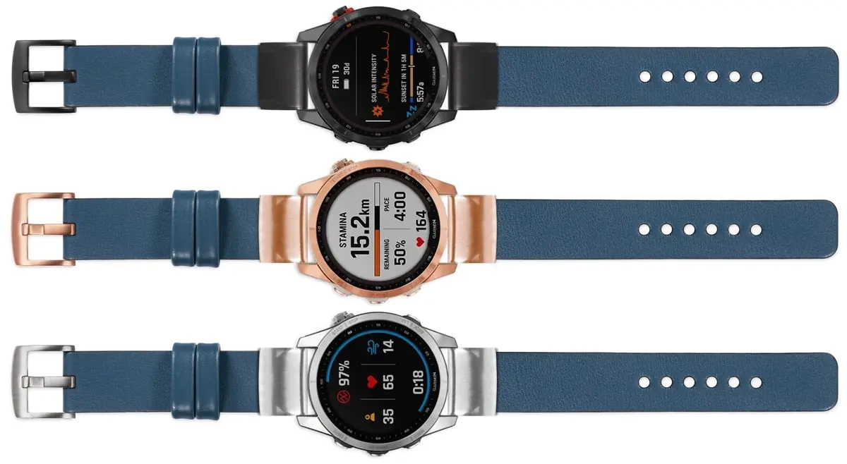 - 1 szt. moVear Prestige S1 Skórzany pasek z adapterem mocowania na Garmin QuickFit 20mm.