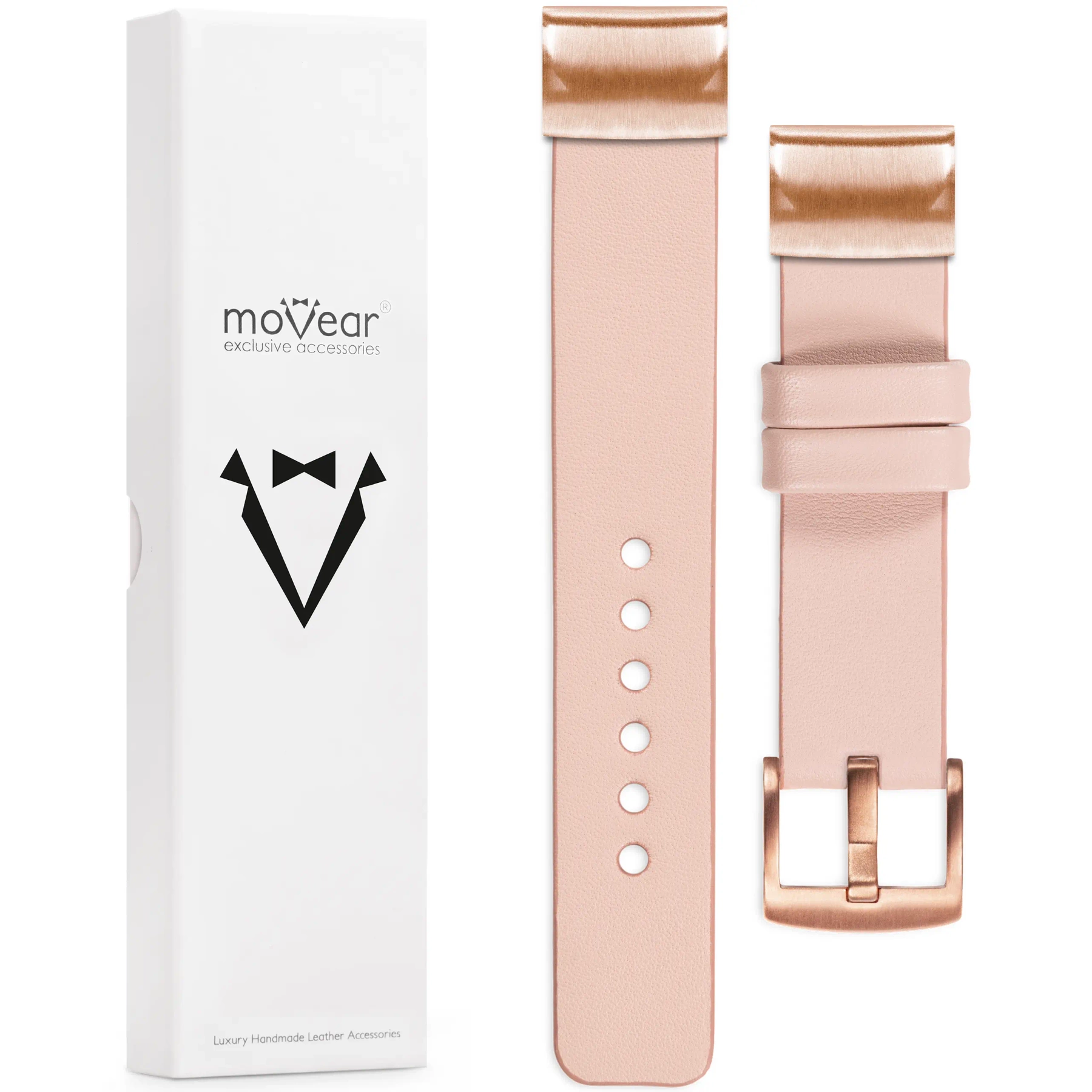 moVear Prestige S1 Skórzany pasek do Garmin QuickFit 20mm (Fenix / Instinct - 43/42/40mm) | Różowy cielisty [rozmiary XS-XXL i klamra do wyboru]