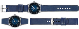 - 1 szt. moVear Prestige C1 - Skórzany pasek szerokości mocowania 20mm, kolor paska Granatowy, srebrne przeszycie