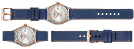 - 1 szt. moVear Prestige C1 - Skórzany pasek szerokości mocowania 20mm, kolor paska Granatowy, różowe złoto przeszycie