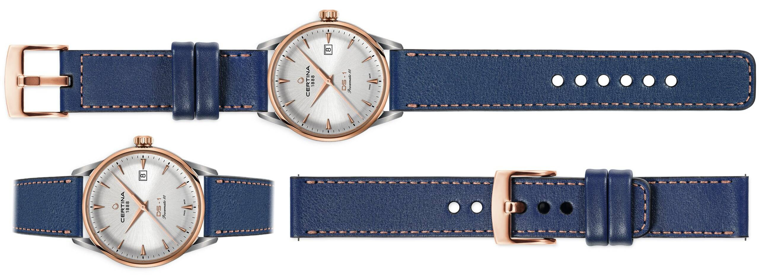 Kolor paska / przeszycia: | Granatowy / Różowe złoto |