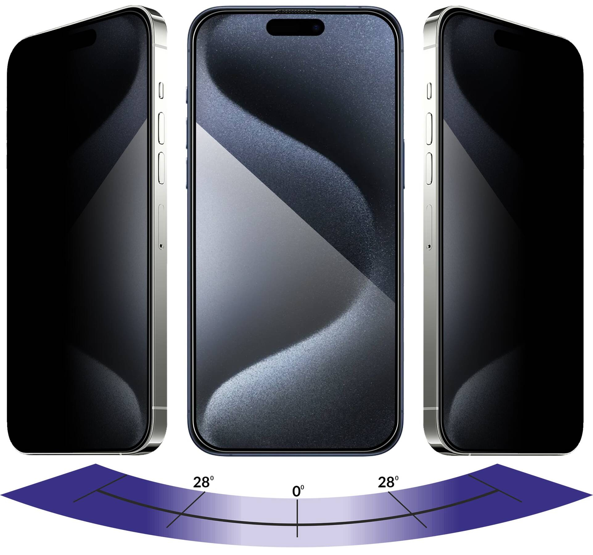 Zastosowany specjalny filtr polaryzacyjny P28™ zmniejsza kąt widzenia treści wyświetlanych na ekranie Apple iPhone 15 Pro Max (6.7"). Dzięki tej specjalnej technologii, osoby siedzące obok Ciebie nie będą mogły zobaczyć zawartości wyświetlacza Twojego telefonu. Szkło moVear privacy to prosta I skuteczna ochrona prywatności.