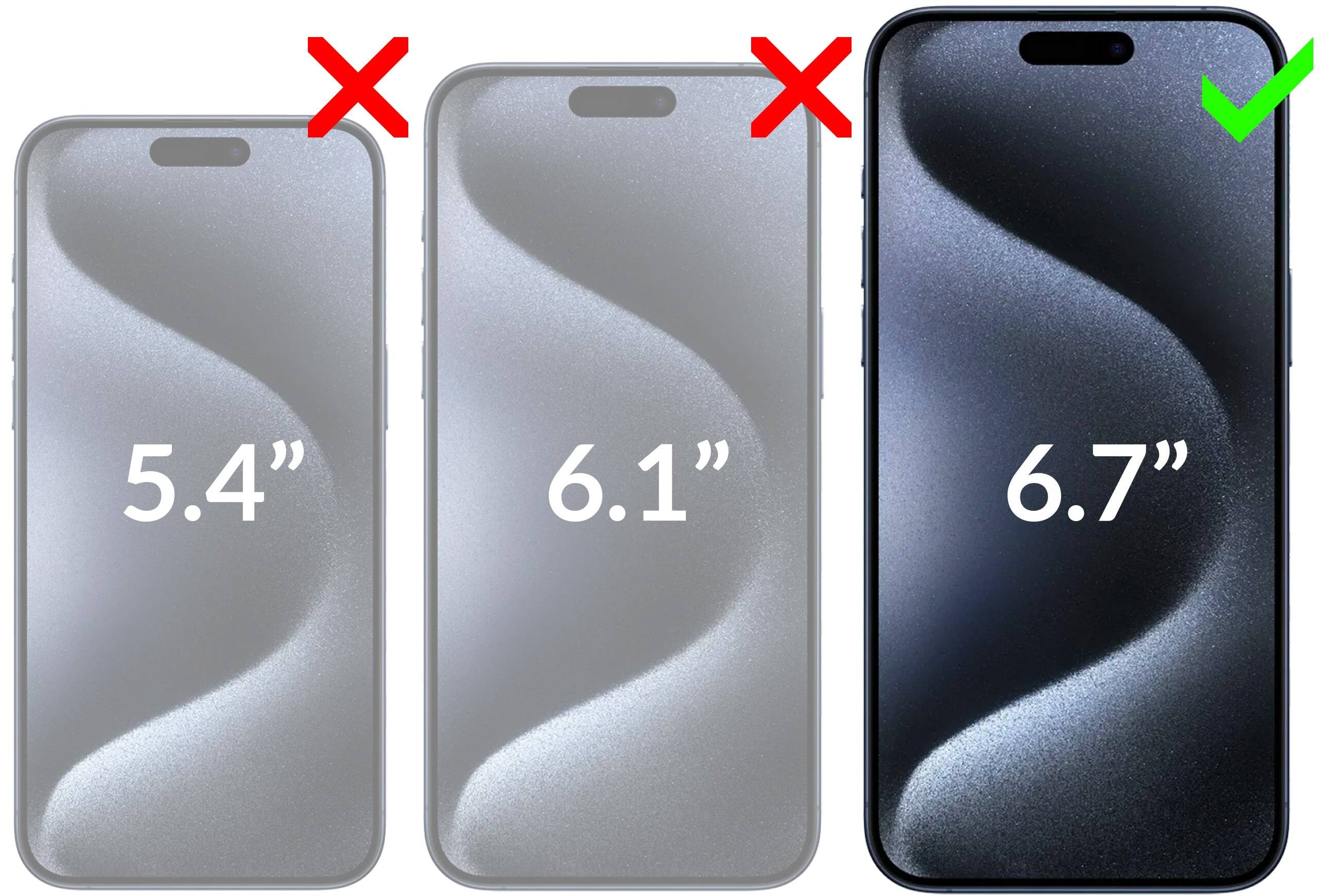 Zwróć uwagę na model i wielkość ekranu smartfona. Szkło kompatybilne jedynie z Apple iPhone 15 Pro Max z ekranem o przekątnej 6.7 cala.