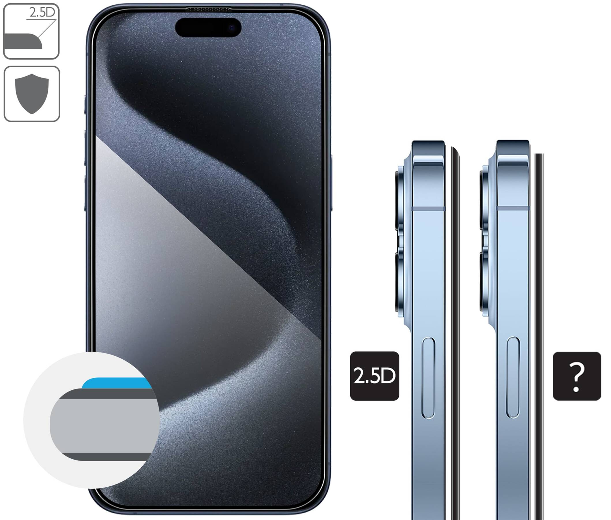 Wysokiej jakości produkt to również precyzyjne wykończenie. Zaokrąglone, wykonane w technologii 2.5D krawędzie warstwy szkła, są bezpieczne dla użytkownika i bardziej odporne na uszkodzenia. Wygładzony brzeg szkła 9H wpływa również bardzo pozytywnie na komfort użytkowania na telefonie. Należy zwrócić uwagę że szkło Privacy posiadające specjalny filtr P28 poniżej warstwy szkła, wraz zwarstwą kleju tworzą grubszą warstwę. Dlatego mimo takiej samej krzywizny krawędzi, odczucie zakrzywienia jest inne niż w klasycznym szkle 2.5D bez filtra anty spy.Rysunek obok przedstawia szkło hartowane moVear mBOX GLASS mSHIELD 2.5D MAX privacy dla telefonu Apple iPhone 15 Pro Max (6.7").