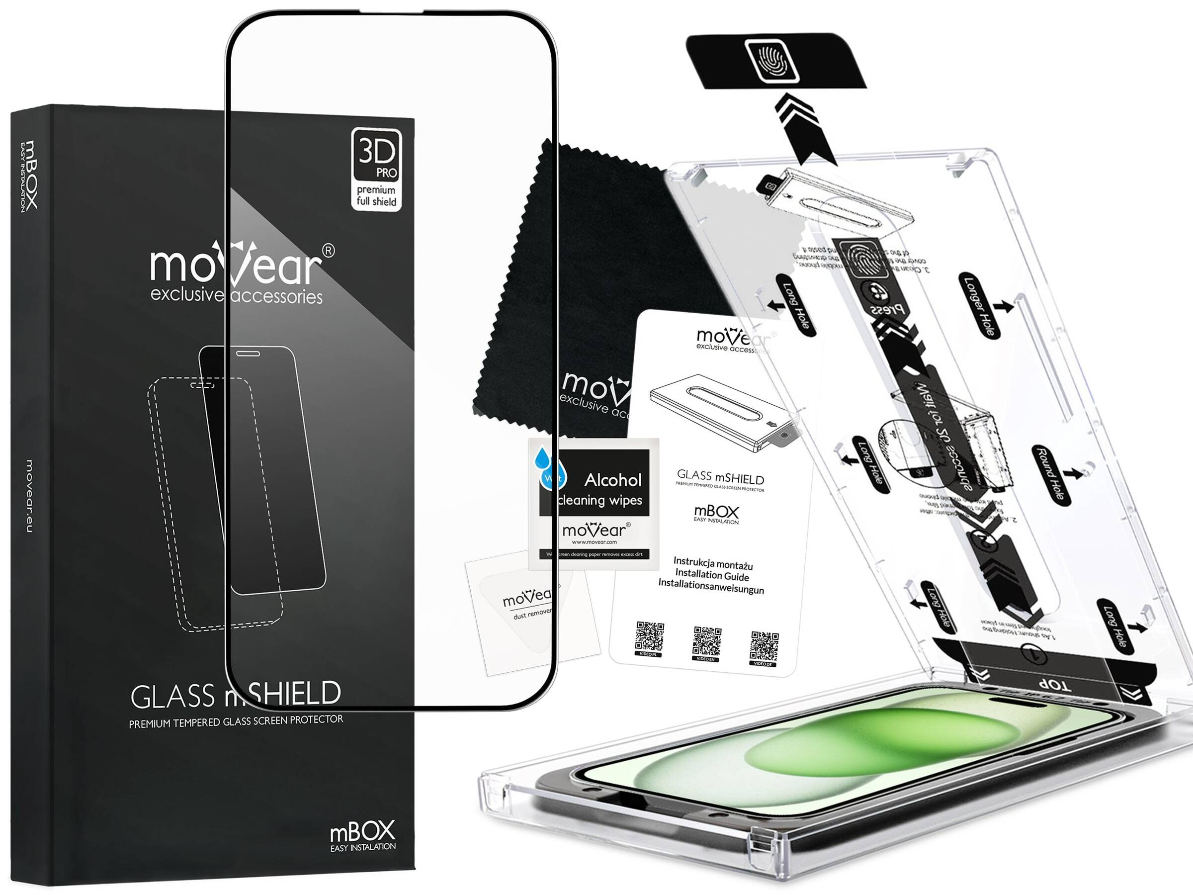 moVear mBOX GLASS mSHIELD 3D PROSzkło hartowane na Apple iPhone 16 Plus / 15 Plus (6.7"), z systemem łatwego montażu