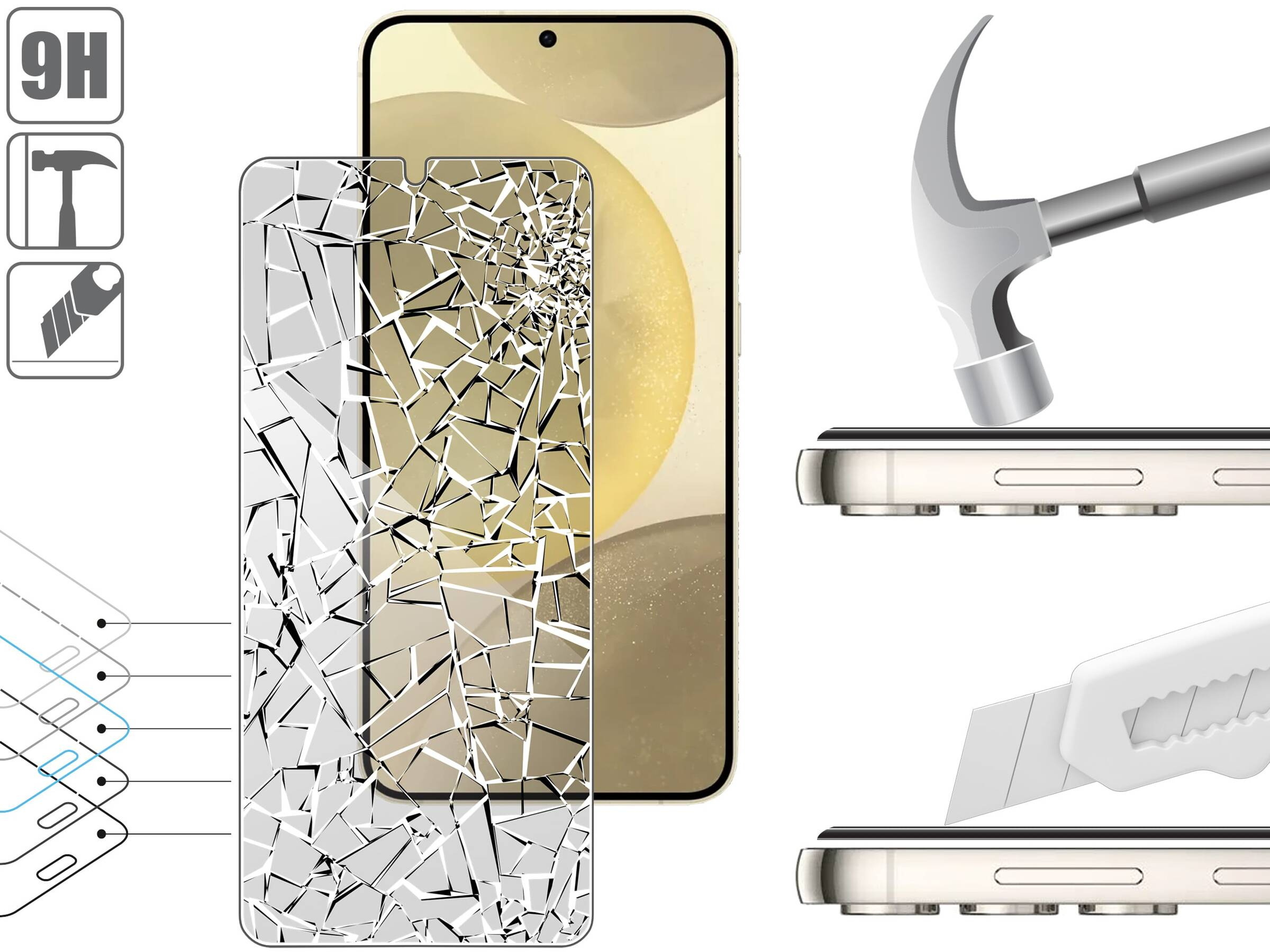 Połączenie warstw, zmniejsza podatność na pęknięcia i rozkruszenie. Pochłania energię uderzeń, zapewnia ochronę ekranu Samsung Galaxy S25+/S24+ (Plus) i zmniejsza ryzyko uszkodzeń wyświetlacza podczas upadku smartfona.