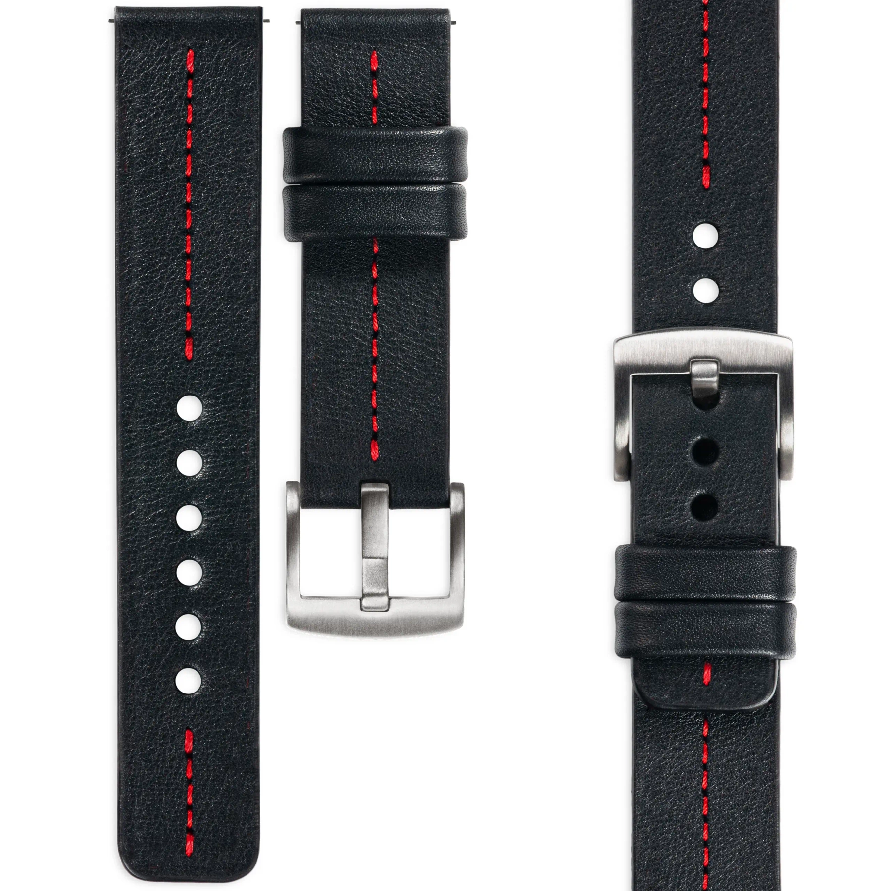 moVear Prestige C2 Skórzany pasek 22mm do zegarka / smartwatcha | Czarny, eleganckie przeszycie kolor Czerwony