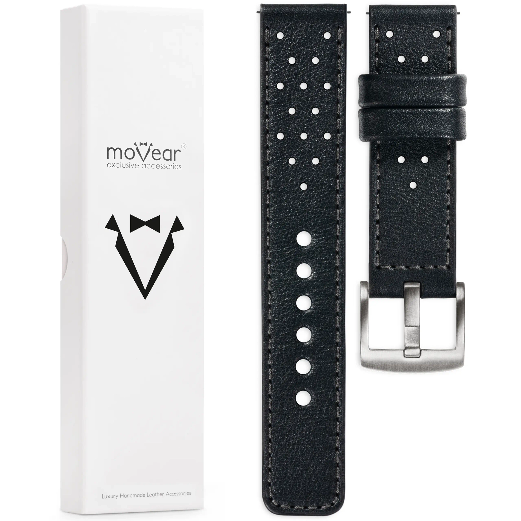 - 1 szt. moVear Prestige C1 - Skórzany pasek szerokości mocowania 20mm, kolor paska Czarny, przeszycie Grafitowy