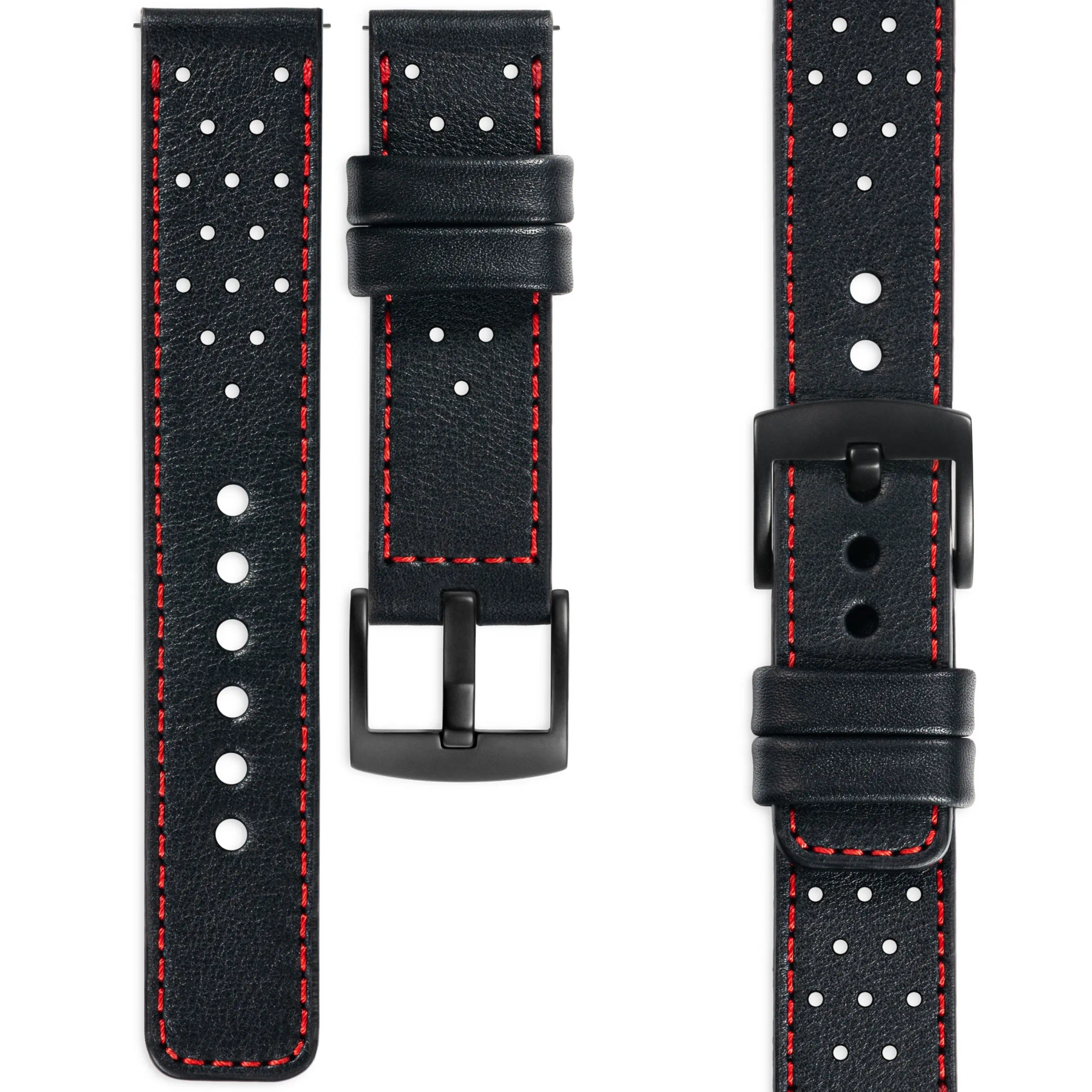 - 1 szt. moVear Prestige C1 - Skórzany pasek szerokości mocowania 22mm, kolor paska Czarny, przeszycie Czerwony