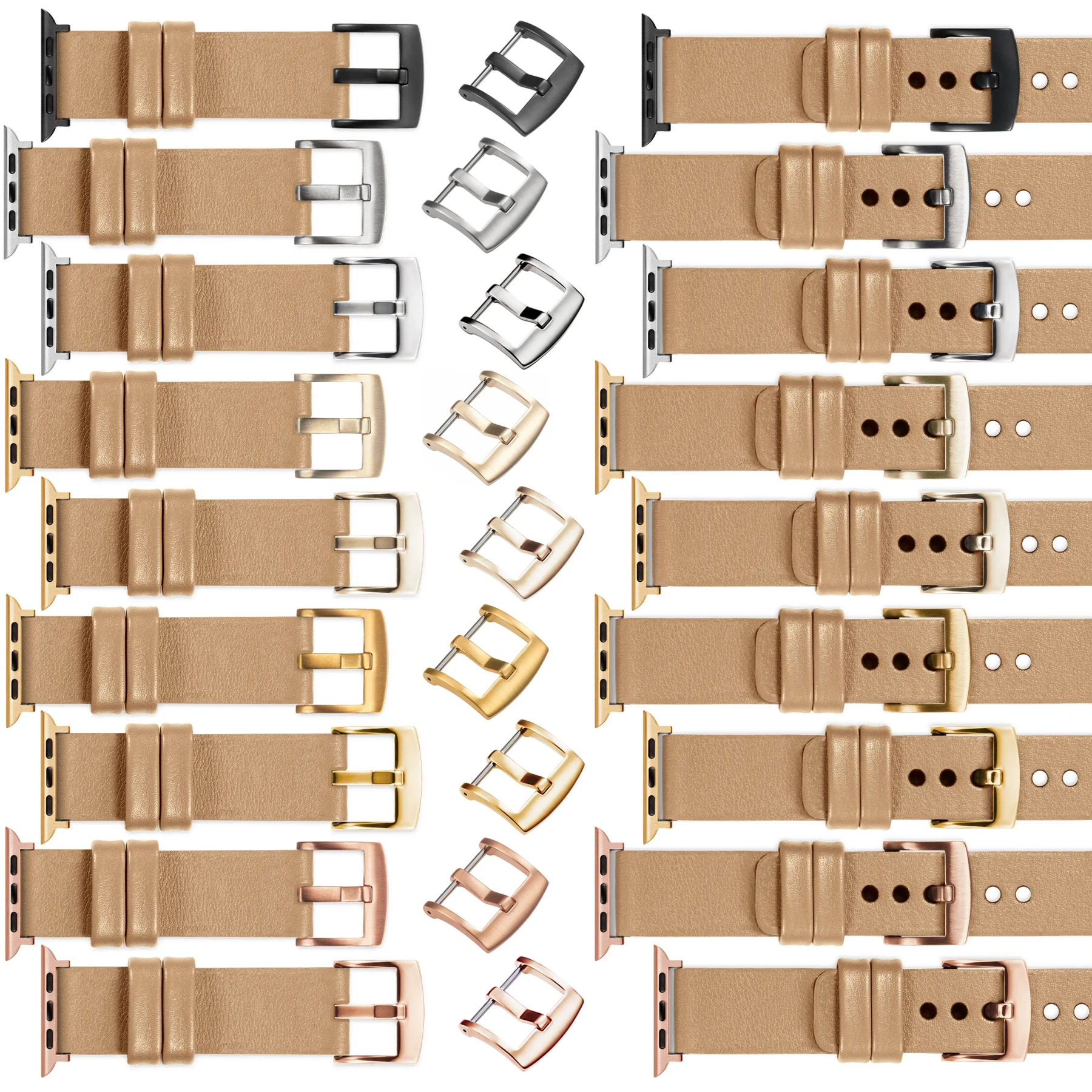 Wykonujemy paski do Apple Watch w wielu różnych konfiguracjach. Jeżeli domyślna klamra i adapter (Różowe złoto) wymaga zmiany na inny kolor - oferujemy następujące opcje:
