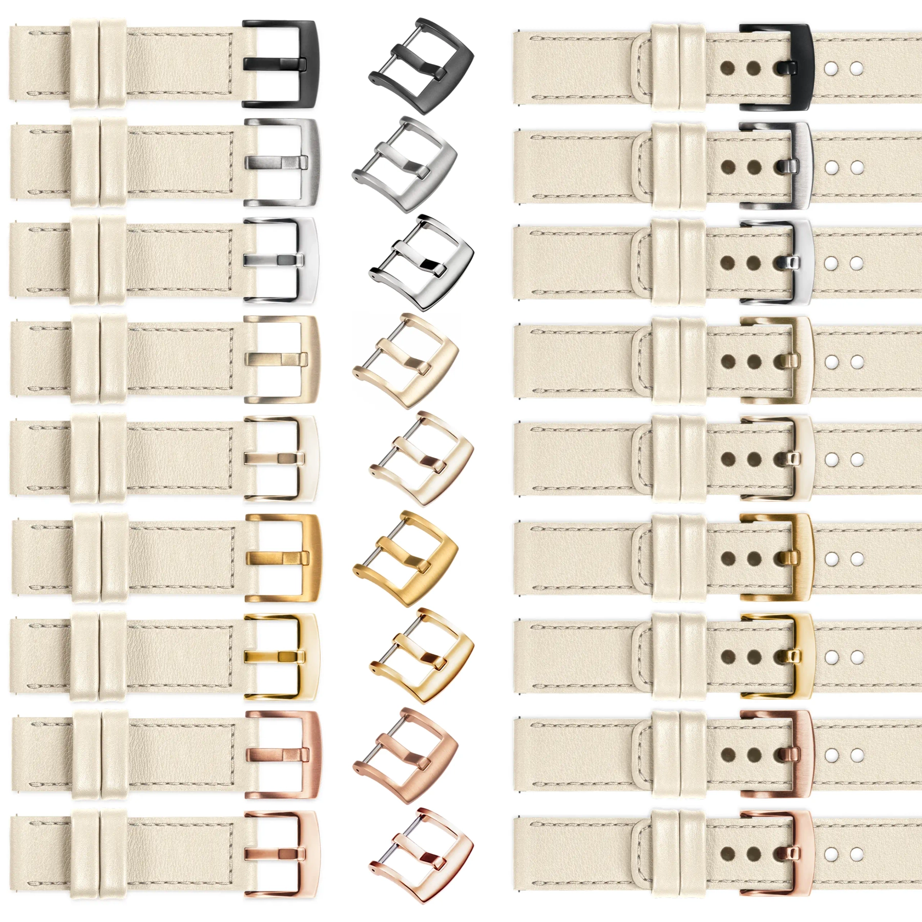 Wykonujemy paski do zegarków / smartwatchy w wielu różnych konfiguracjach. Jeżeli domyślna klamra (Złoty) wymaga zmiany na inny kolor - oferujemy następujące opcje: