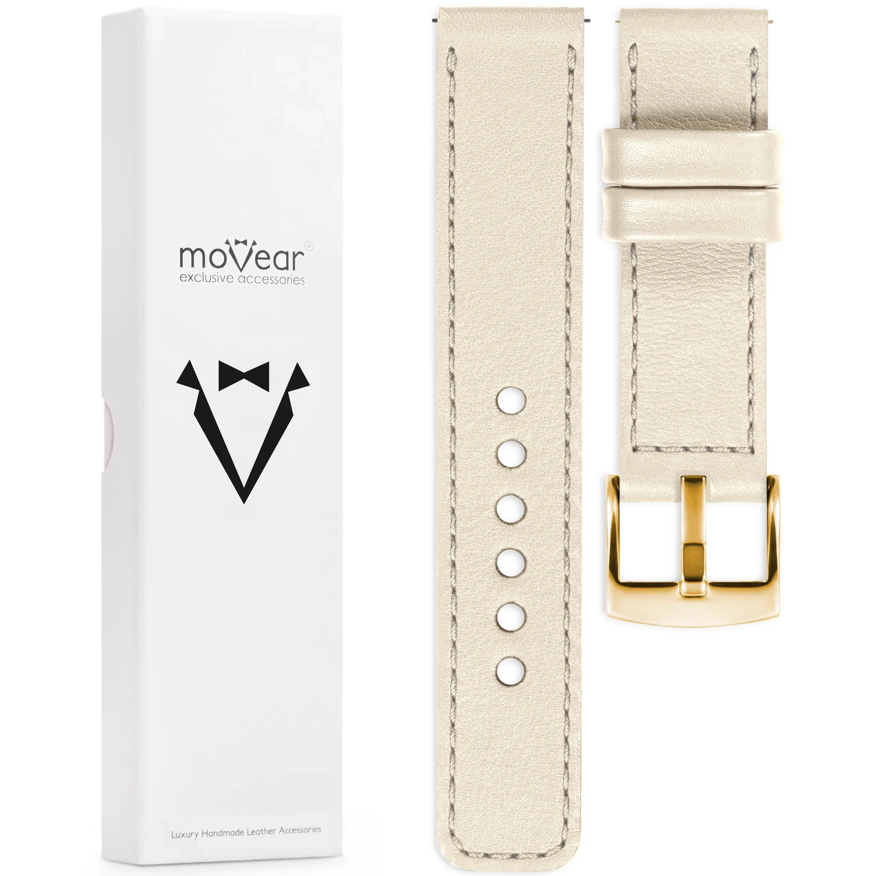 - 1 szt. moVear Prestige C1 - Skórzany pasek szerokości mocowania 24mm, kolor paska Beżowy, beżowe przeszycie