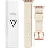 moVear Prestige C1 | Skórzany pasek 22mm do Apple Watch 10 / 9 / 8 / 7 / 6 / 5 / 4 / SE (42/41/40mm) | Beżowy, eleganckie przeszycie kolor Różowe złoto