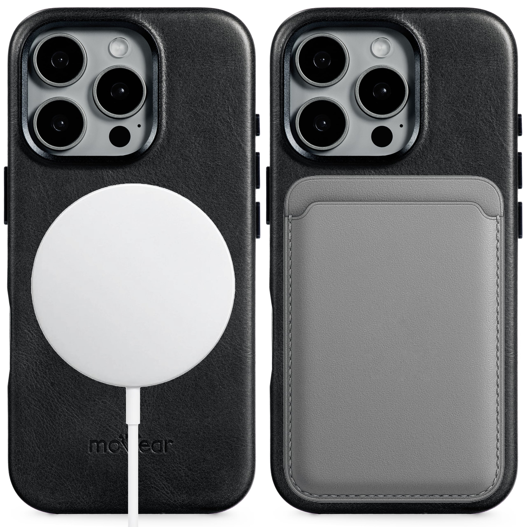 Etui moVear backCover 4S posiada wbudowane specjalne magnesy na tylnej części, dzięki czemu jest kompatybilne z magnetycznymi akcesoriami i ładowarkami zgodnymi z MagSafe. Korzystaj z akcesoriów i ładuj telefon bezprzewodowo bez potrzeby zdejmowania skórzanej obudowy.