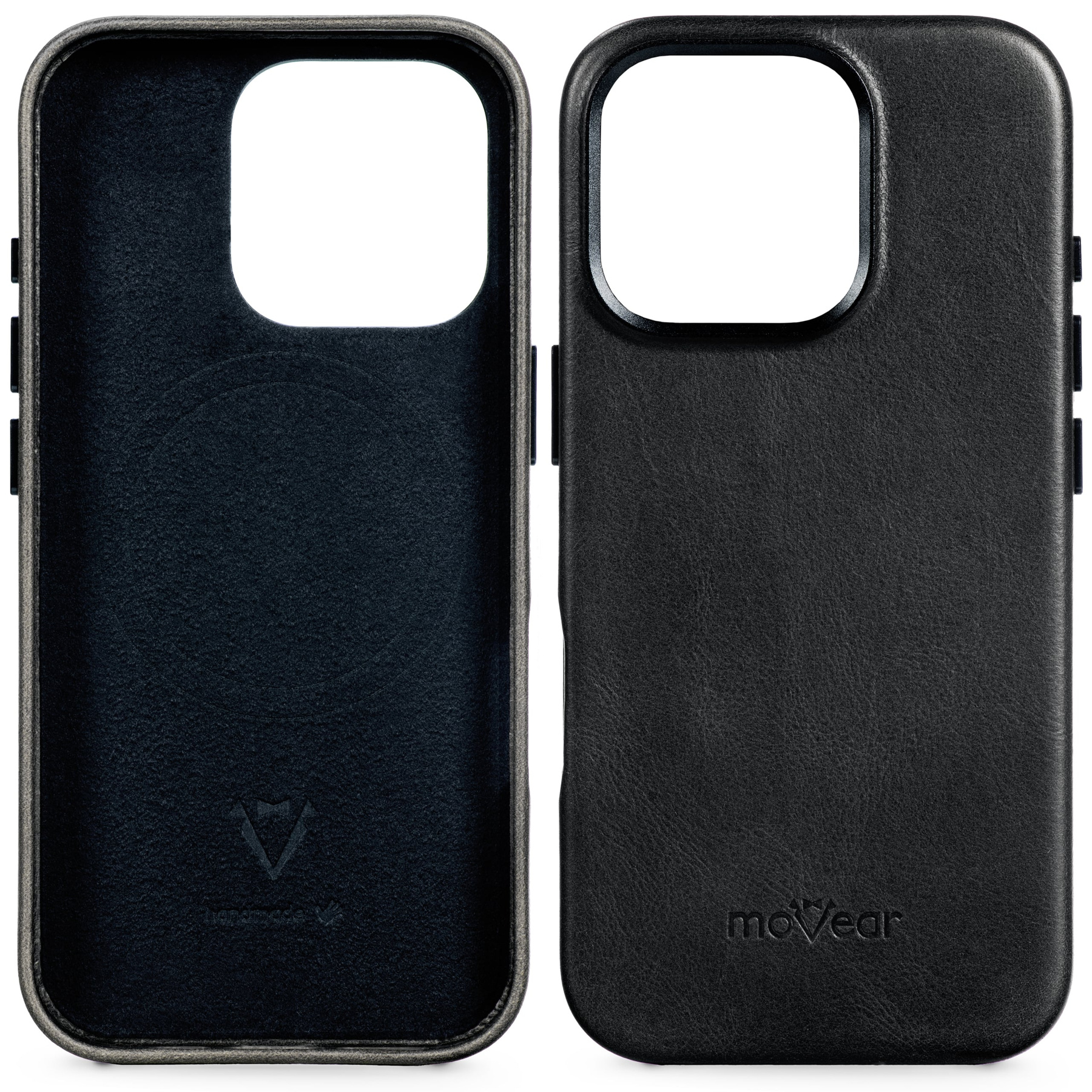 moVear backCover 4SKompatybilne z MagSafe skórzane plecki do Apple iPhone 16 Pro (6.3") | Skóra naturalna olejowana, kolor - Czarny