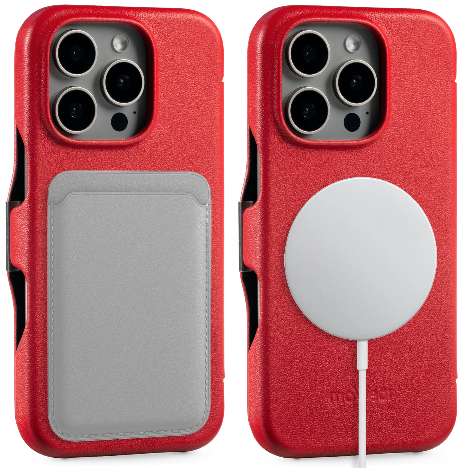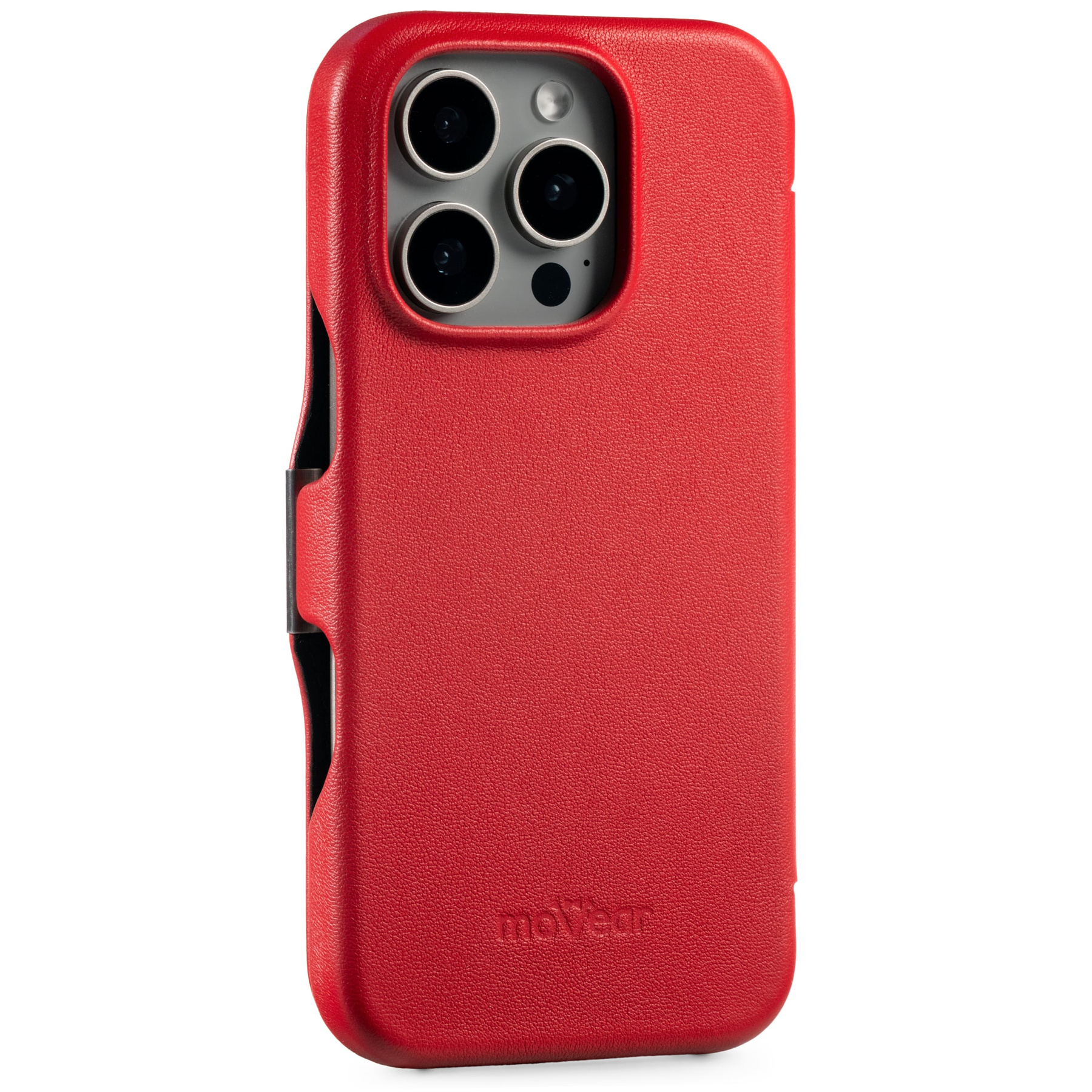 moVear flipSide 4CSkórzane etui do Apple iPhone 16 Pro (6.3") | Skóra naturalna gładka, kolor - Czerwony