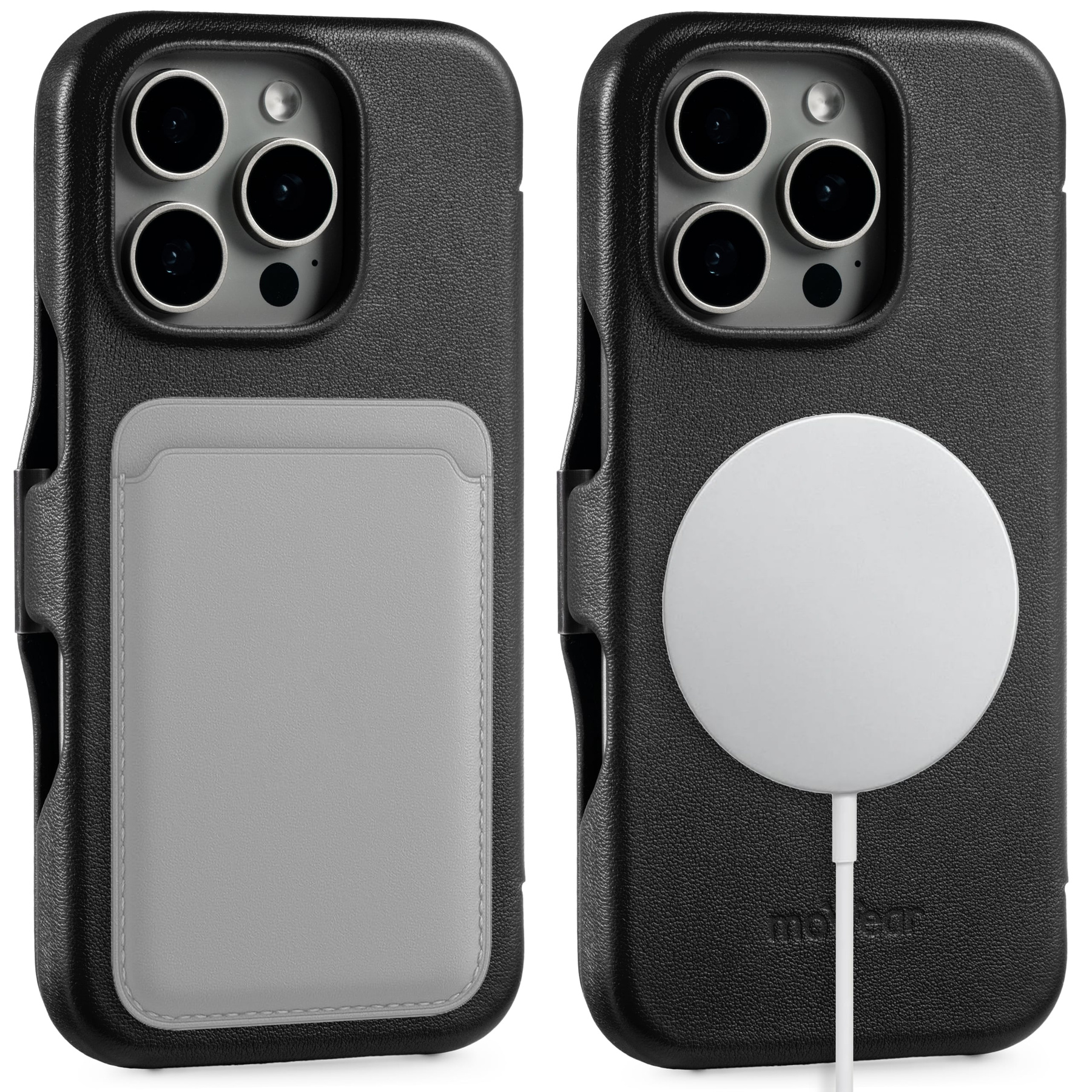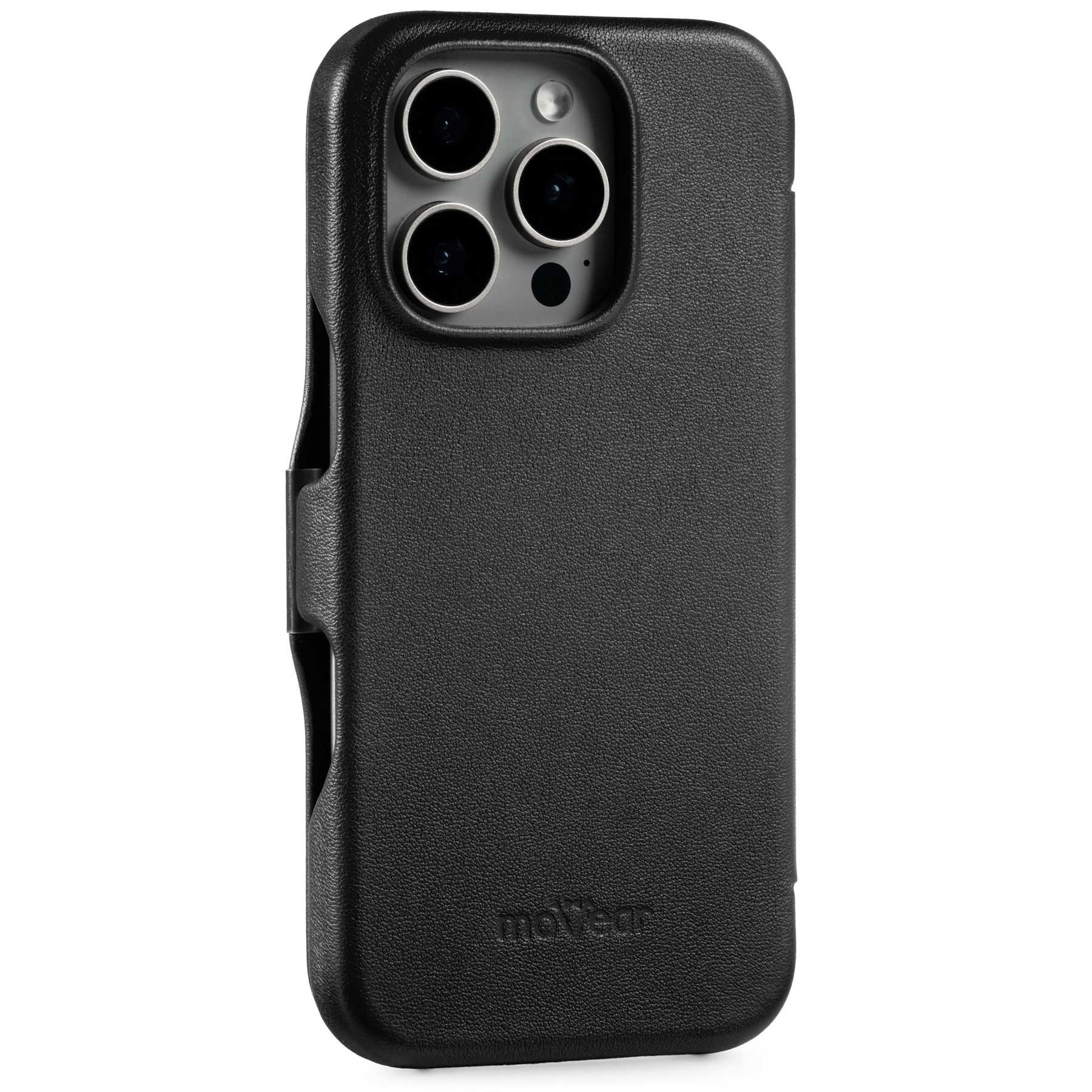 moVear flipSide 4CSkórzane etui do Apple iPhone 16 Pro (6.3") | Skóra naturalna gładka, kolor - Czarny