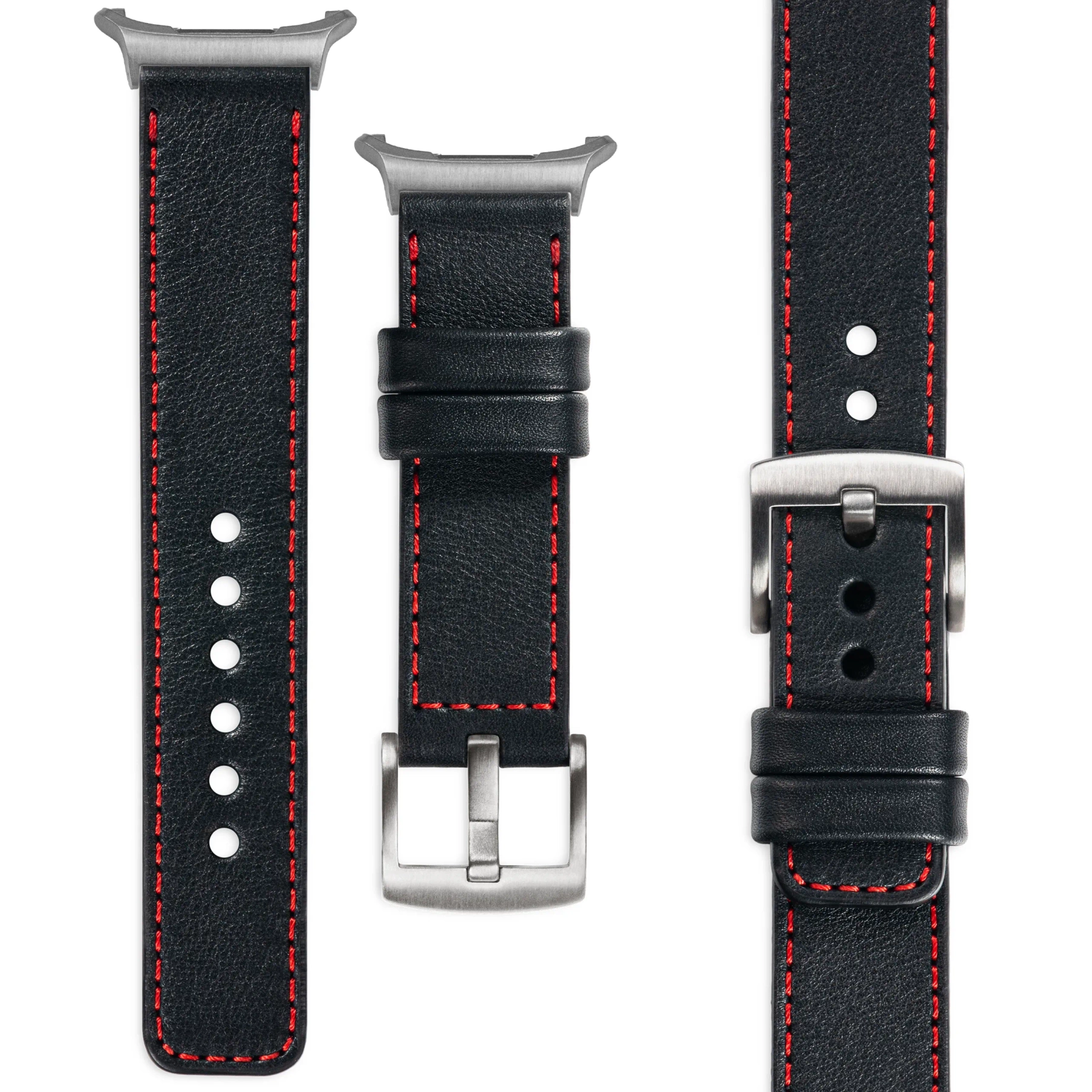 moVear Prestige C1 | Skórzany pasek 22mm do Samsung Galaxy Watch Ultra | Czarny, eleganckie przeszycie kolor Czerwony