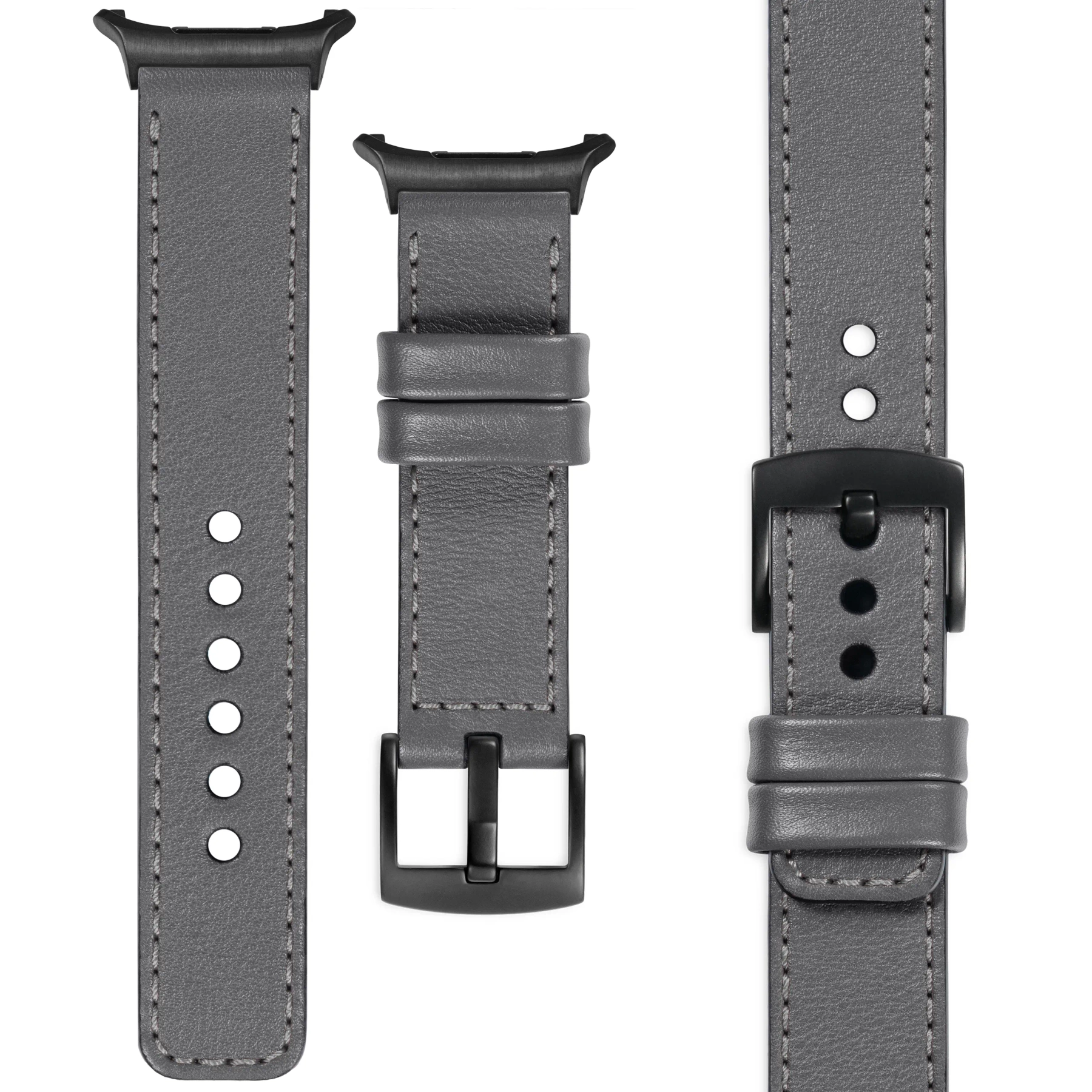 moVear Prestige C1 | Skórzany pasek 24mm do Samsung Galaxy Watch Ultra | Szary, eleganckie przeszycie kolor Szary