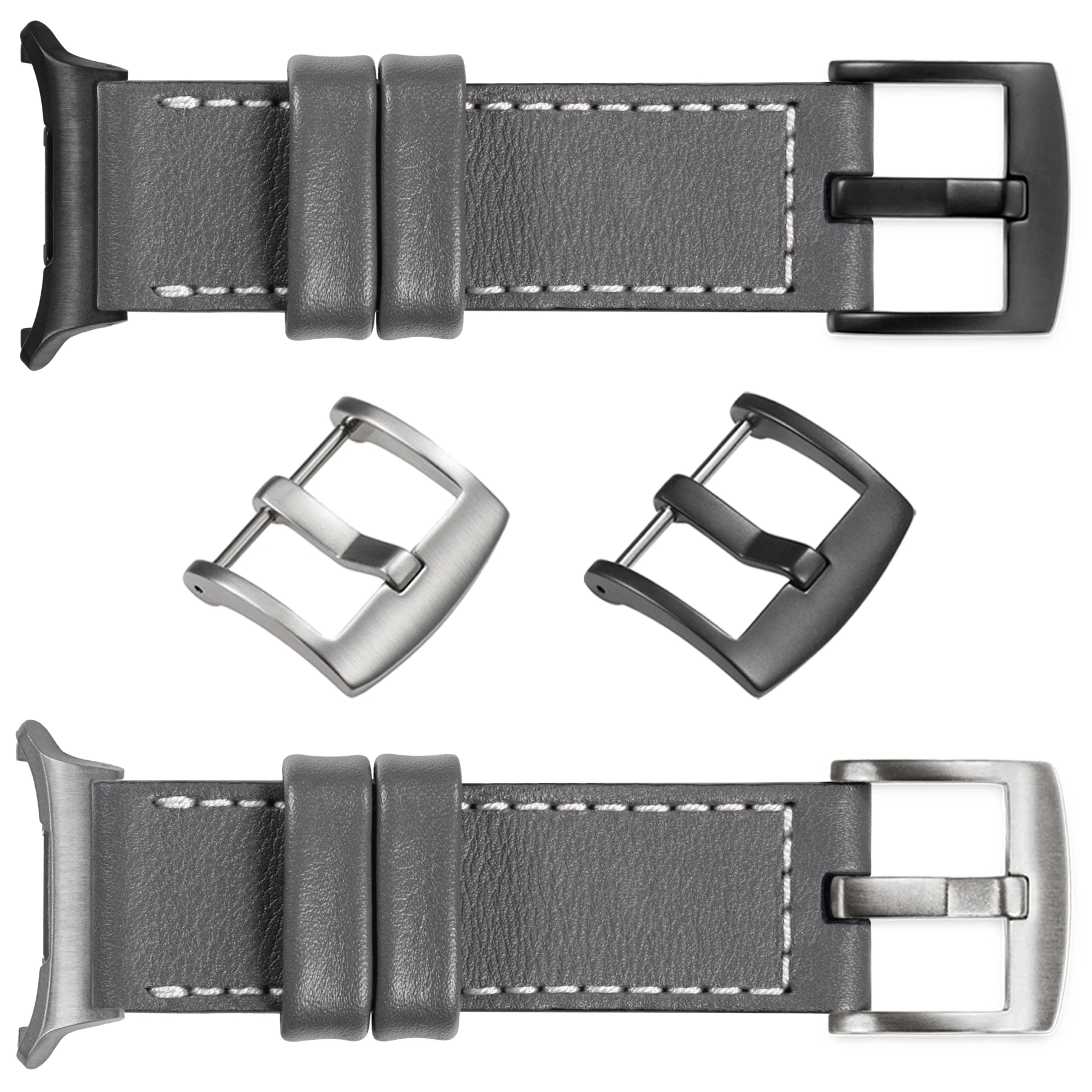 • moVear Prestige C1 Skórzany pasek 24mm do Samsung Galaxy Watch Ultra | Szary, białe przeszycie [rozmiary XS-XXL i klamra do wyboru]