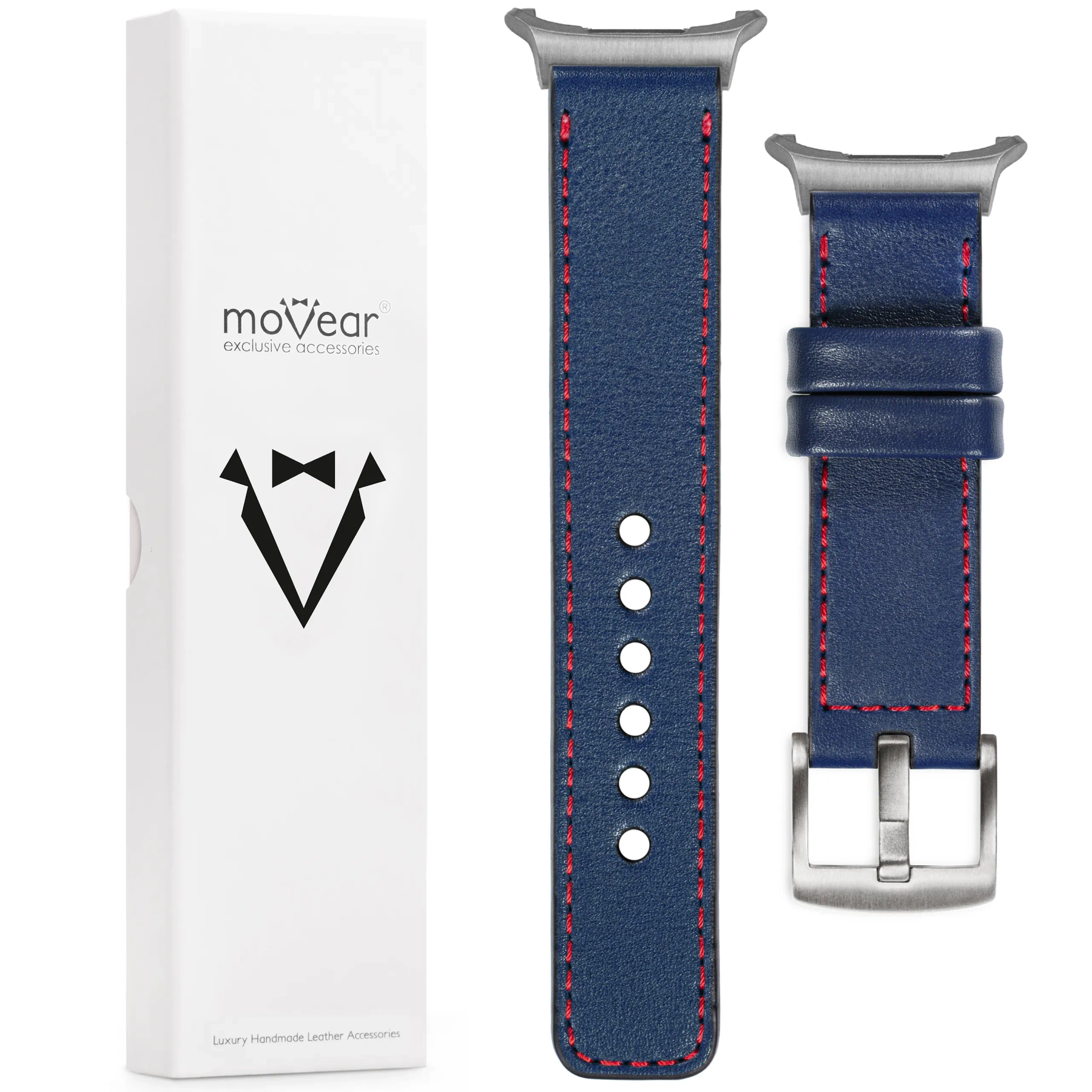 moVear Prestige C1 | Skórzany pasek 22mm do Samsung Galaxy Watch Ultra | Granatowy, eleganckie przeszycie kolor Czerwony
