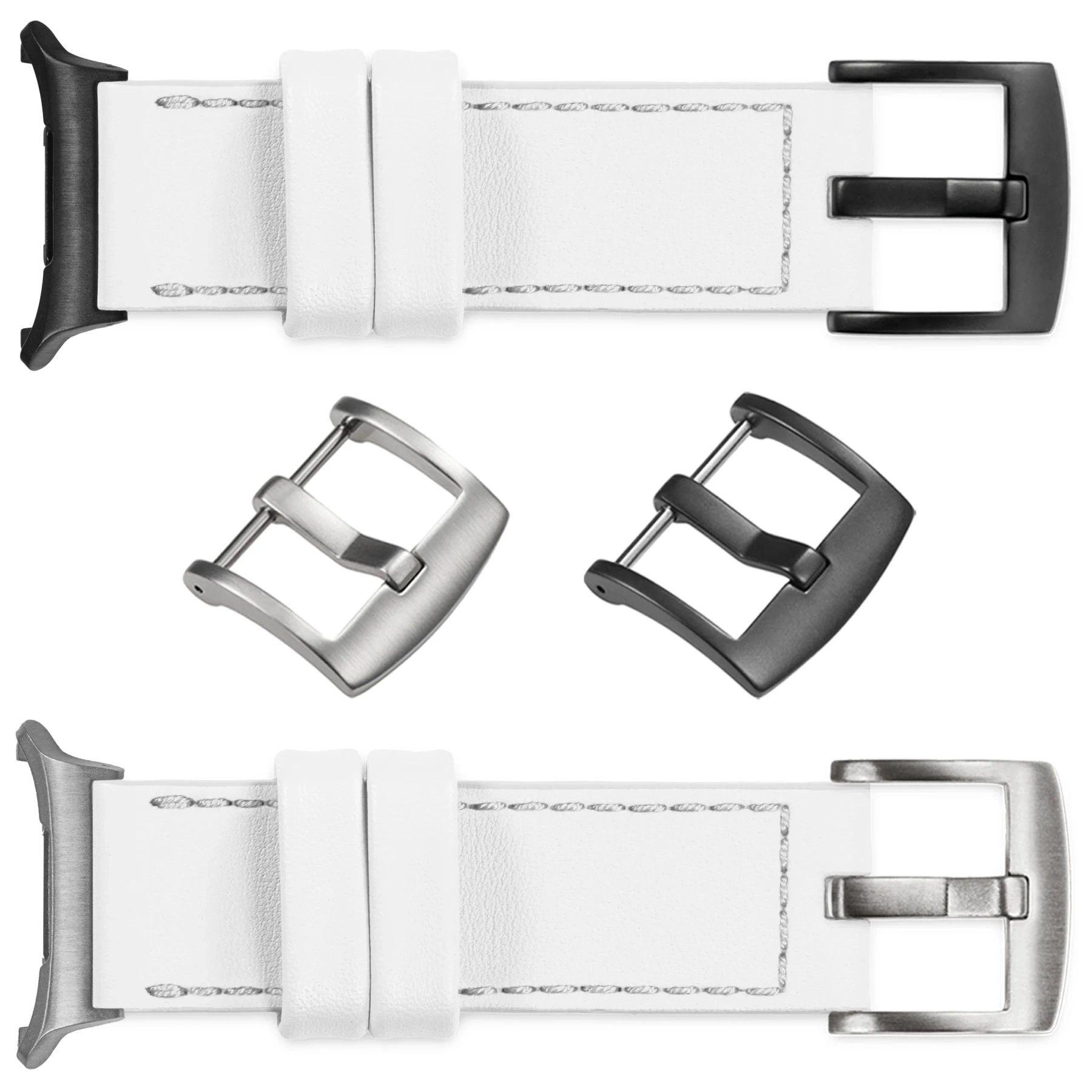 moVear Prestige C1 | Skórzany pasek 22mm do Samsung Galaxy Watch Ultra | Biały, eleganckie przeszycie kolor Srebrny