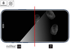 - Wypozycjonuj szkło hartowane nad ekranem, a następnie ostrożnie połóż je na wyświetlaczu. Zwróć uwagę na otwory funkcyjne.