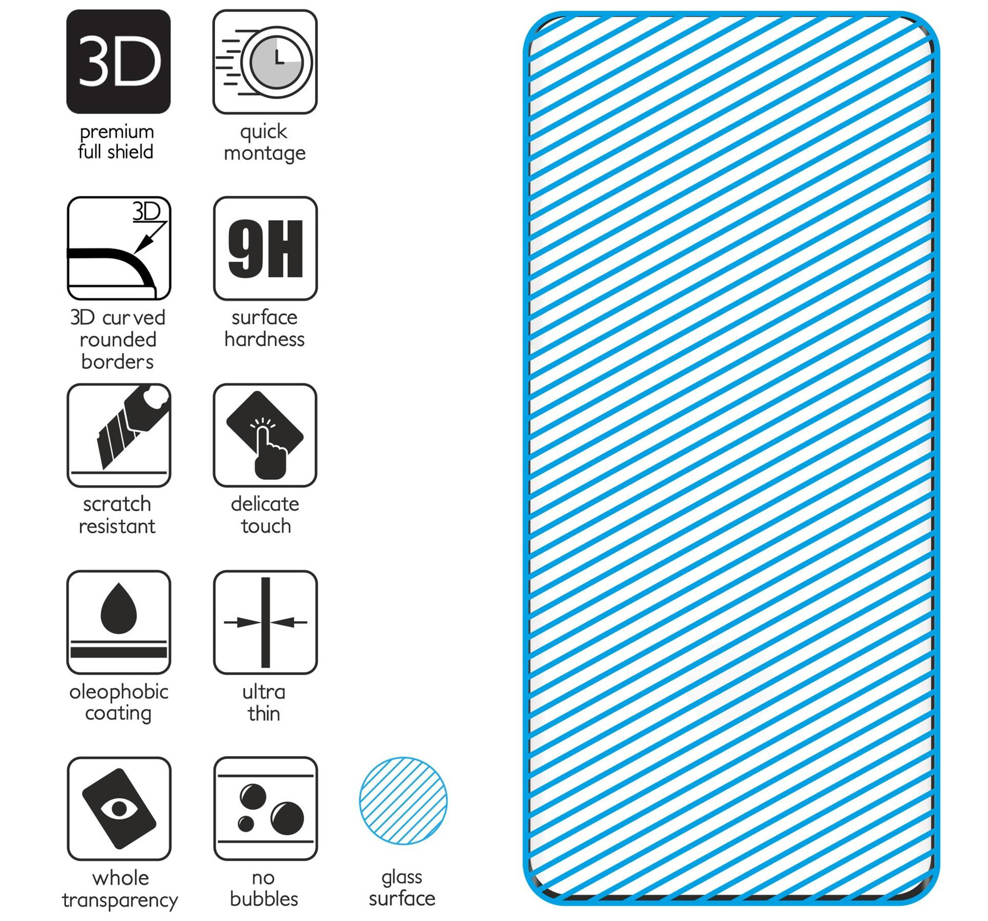 Szkło moVear GLASS mSHIELD 3D posiada zaokrąglone, wykonane w technologii 3D krawędzie dzięki czemu zapewnia lepszą ochronę ekranu i zmniejsza ryzyko uszkodzeń wyświetlacza podczas upadku smartfona.