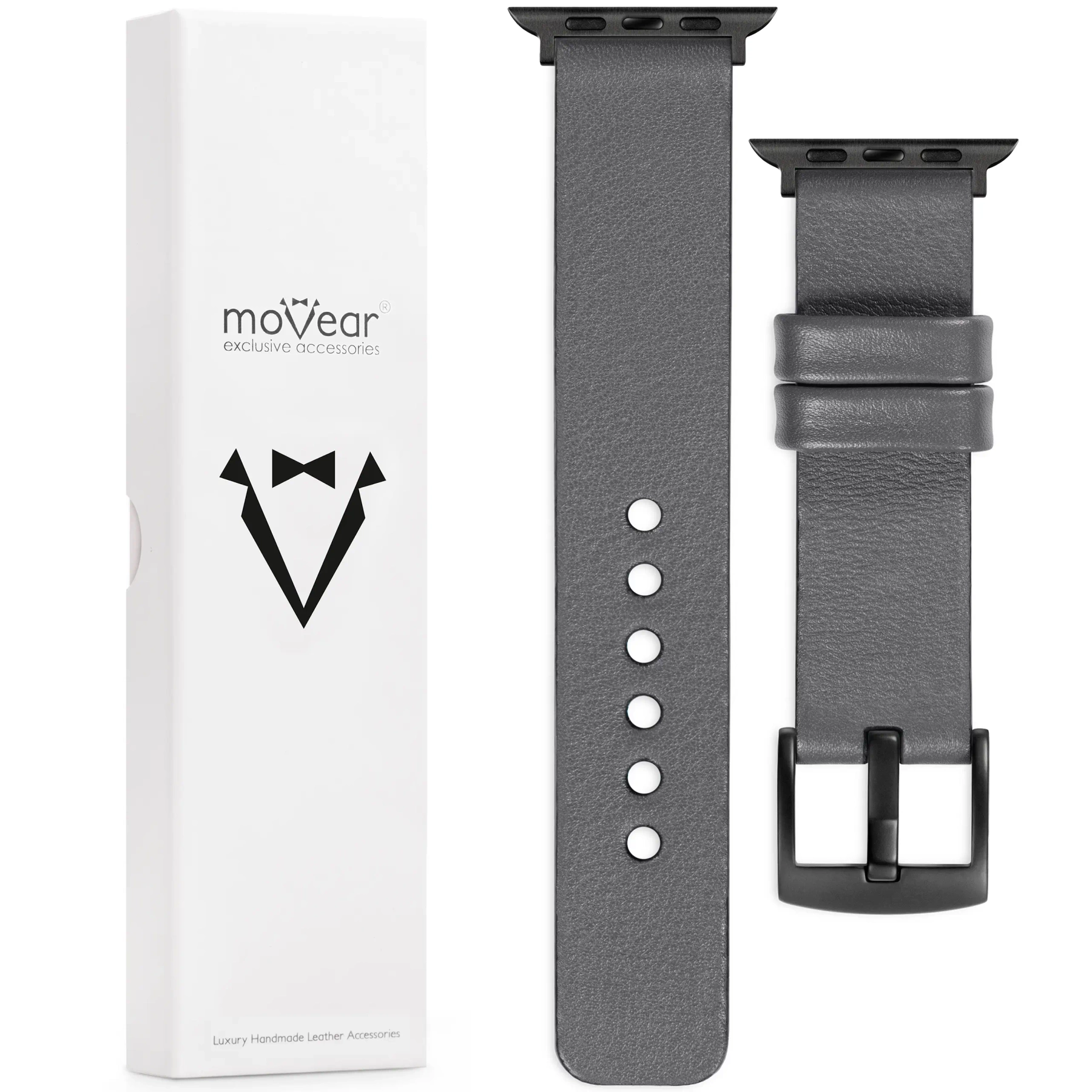 moVear Prestige S1 | Skórzany pasek 22mm do Apple Watch 10 / 9 / 8 / 7 / 6 / 5 / 4 / SE (46/45/44mm) & Ultra (49mm) | Szary