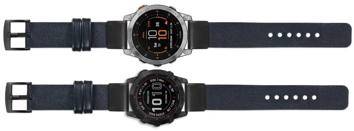 Część skórzana ma szerokość 22mm natomiast szerokość mocowania do zegarka wynosi 26mm (Adapter Garmin QuickFit 26mm)