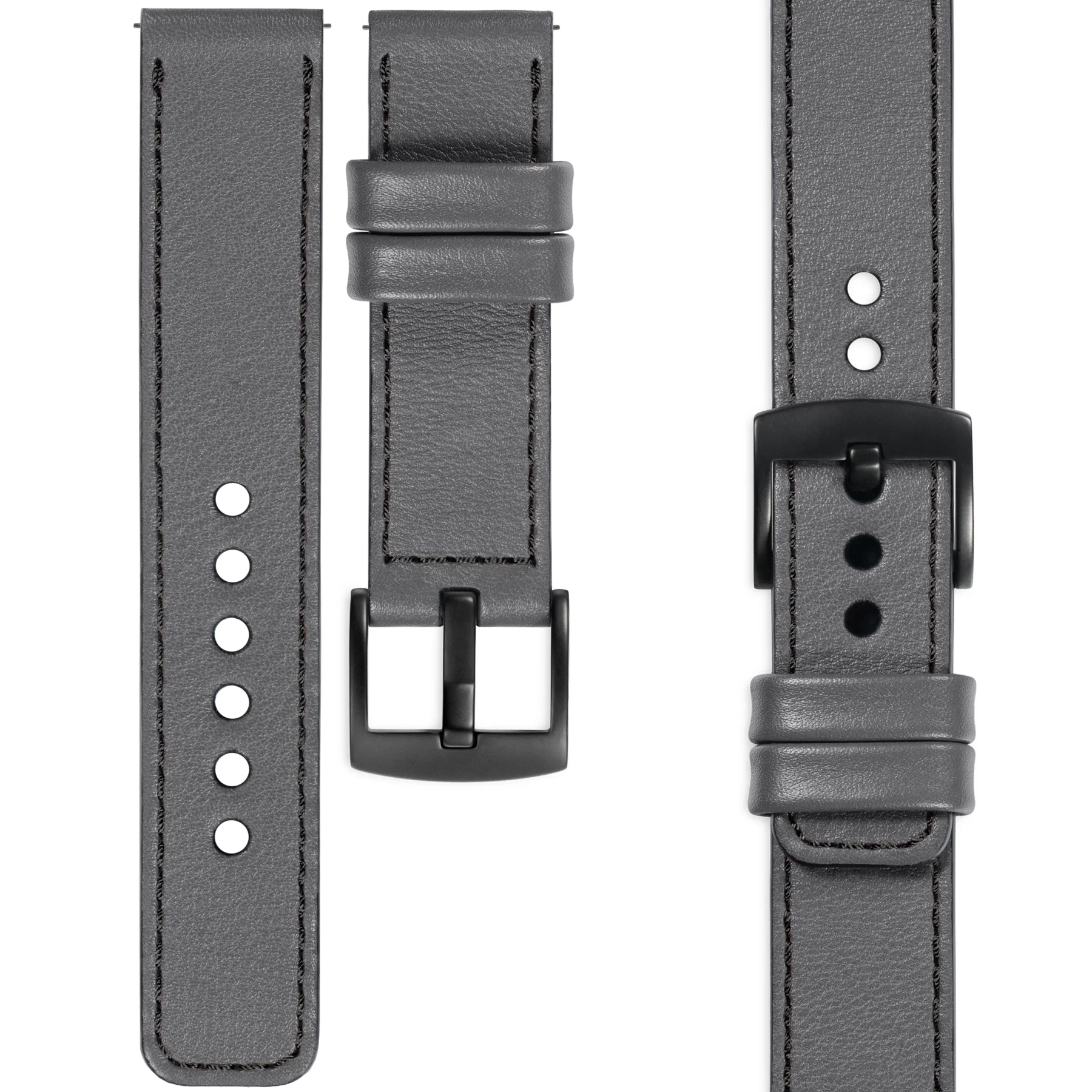 moVear Prestige C1 Skórzany pasek 20mm do zegarka / smartwatcha | Szary, eleganckie przeszycie kolor Czarny