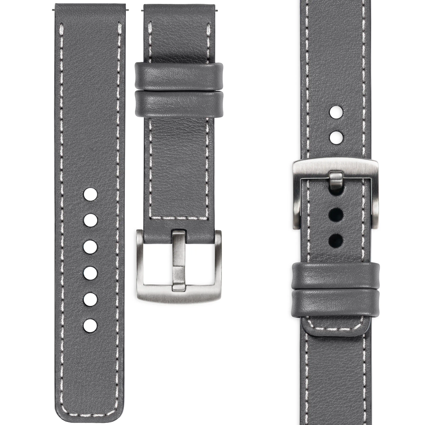 moVear Prestige C1 Skórzany pasek 20mm do zegarka | Szary, białe przeszycie [rozmiary XS-XXL i klamra do wyboru]