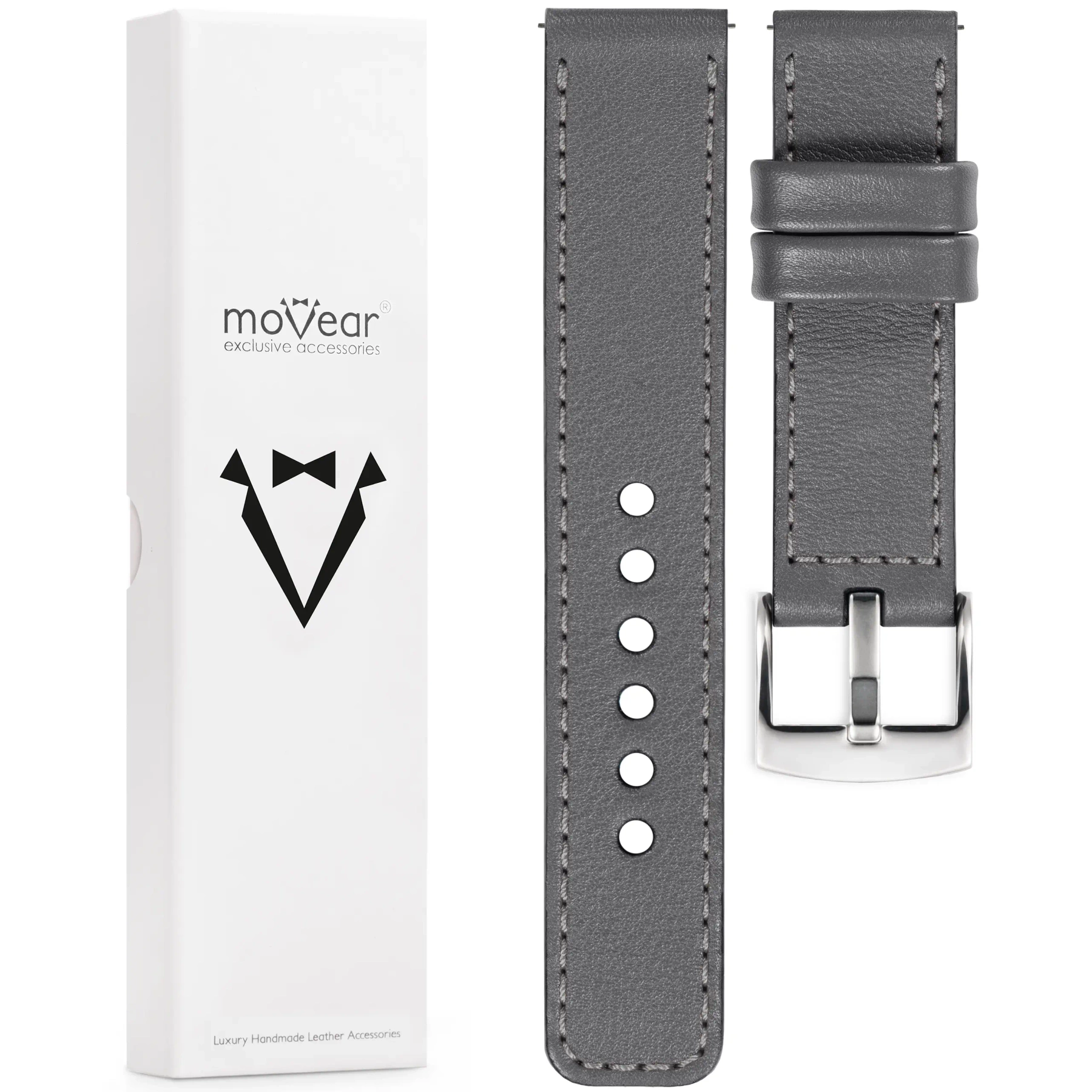 moVear Prestige C1 Skórzany pasek 24mm do zegarka / smartwatcha | Szary, eleganckie przeszycie kolor Szary