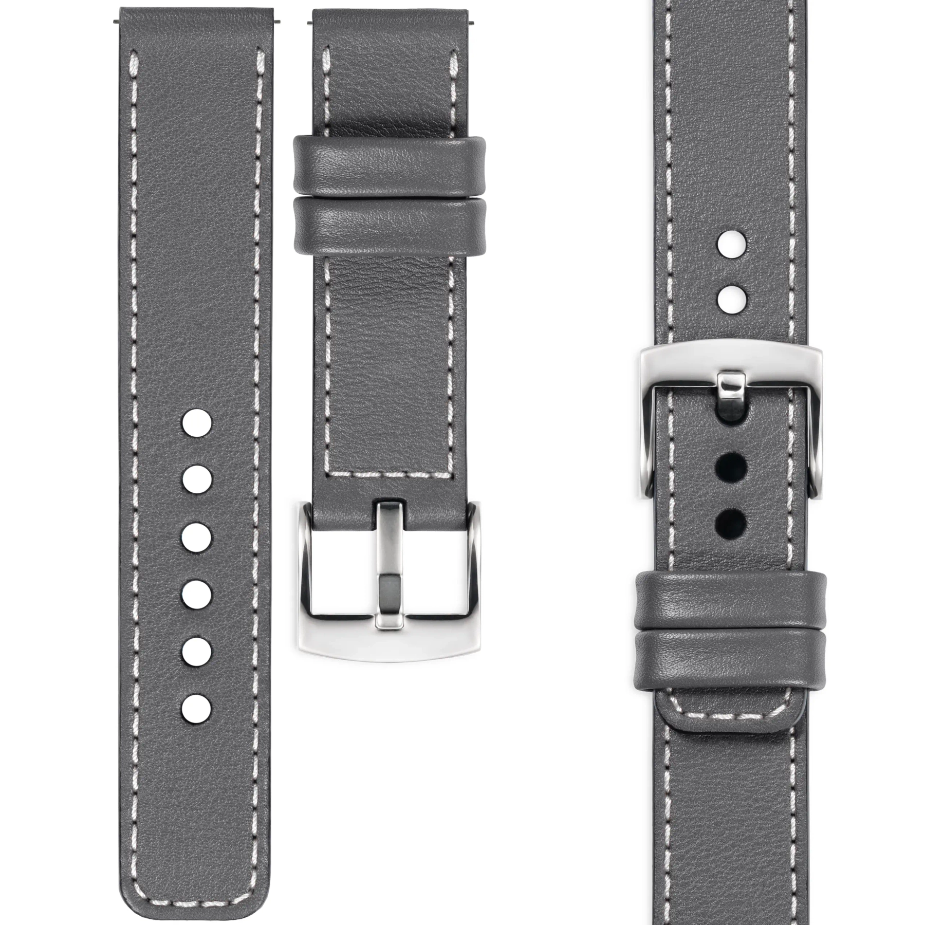 moVear Prestige C1 Skórzany pasek 24mm do zegarka / smartwatcha | Szary, eleganckie przeszycie kolor Biały