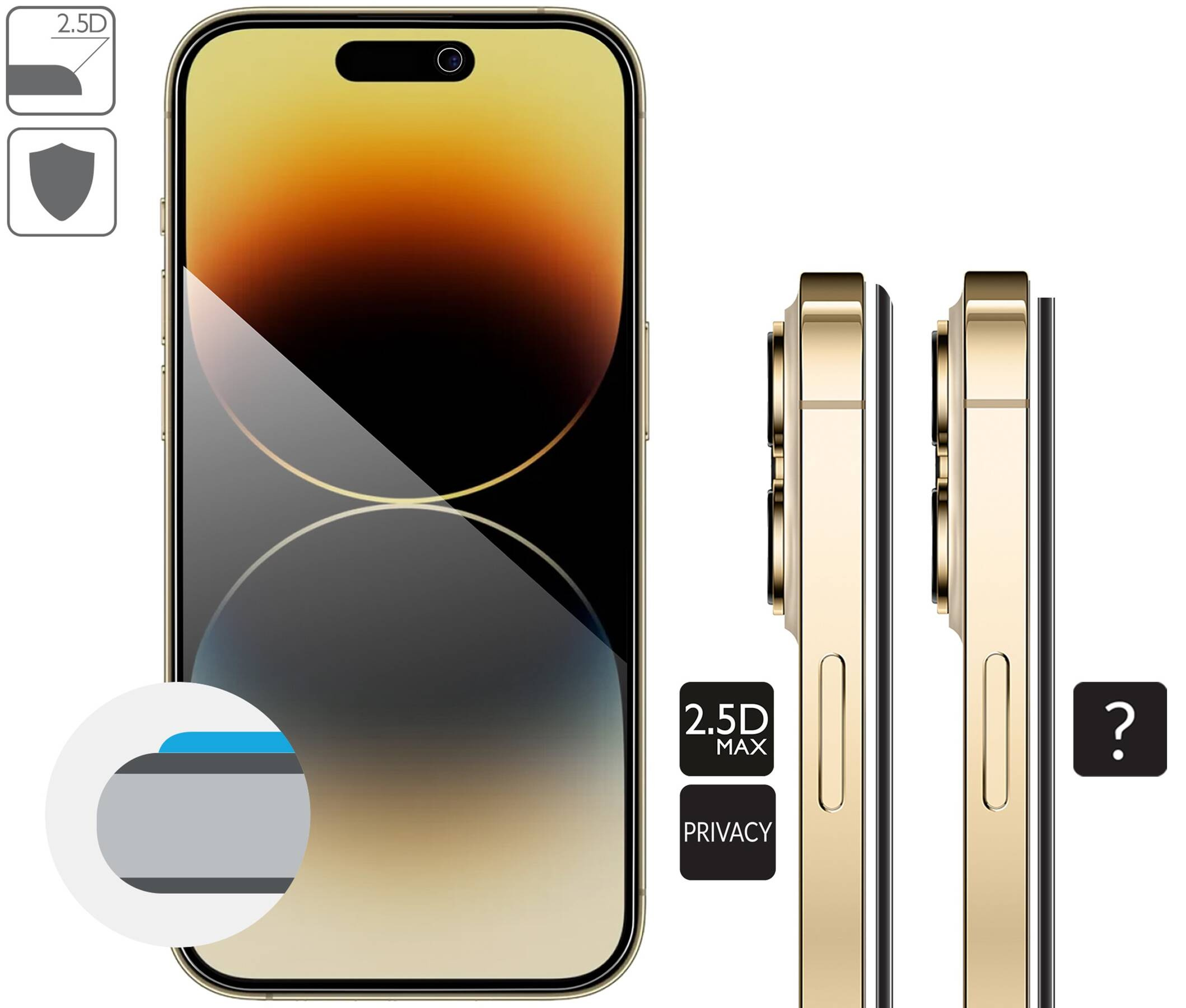 Szkło na cały ekran GLASS mSHIELD 2.5D MAX privacy do Apple iPhone 14 Pro (6.1") zostało zaprojektowane i wycięte z marginesem pozwalającym na użytkowanie szkła moVear z większą ilością etui i pokrowców*. Optymalne wymiary zapewniają prawidłowe przyleganie szkła hartowanego na całej jego powierzchni. (*W przypadku wątpliwości prosimy o kontakt). < br/> UWAGA! Obecnie wiele nowoczesnych smartfonów posiada ekrany charakteryzujące się lekkim zakrzywieniem powierzchni. Szkło 2.5D MAX privacy jest większe od klasycznego szkła 2.5D a jednocześnie trochę mniejsze niż szkło 3D. Dzięki czemu jest kompatybilne z większą ilością etui.