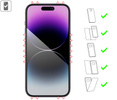 Wygląd i wielkość szkła na telefonieRysunek obok przedstawia jaki obszar ekranu pokrywa szkło hartowane moVear GLASS mSHIELD 3D PRO privacy (antySpy) oraz 2.5D dla telefonu Apple iPhone 14 Pro Max (6.7").