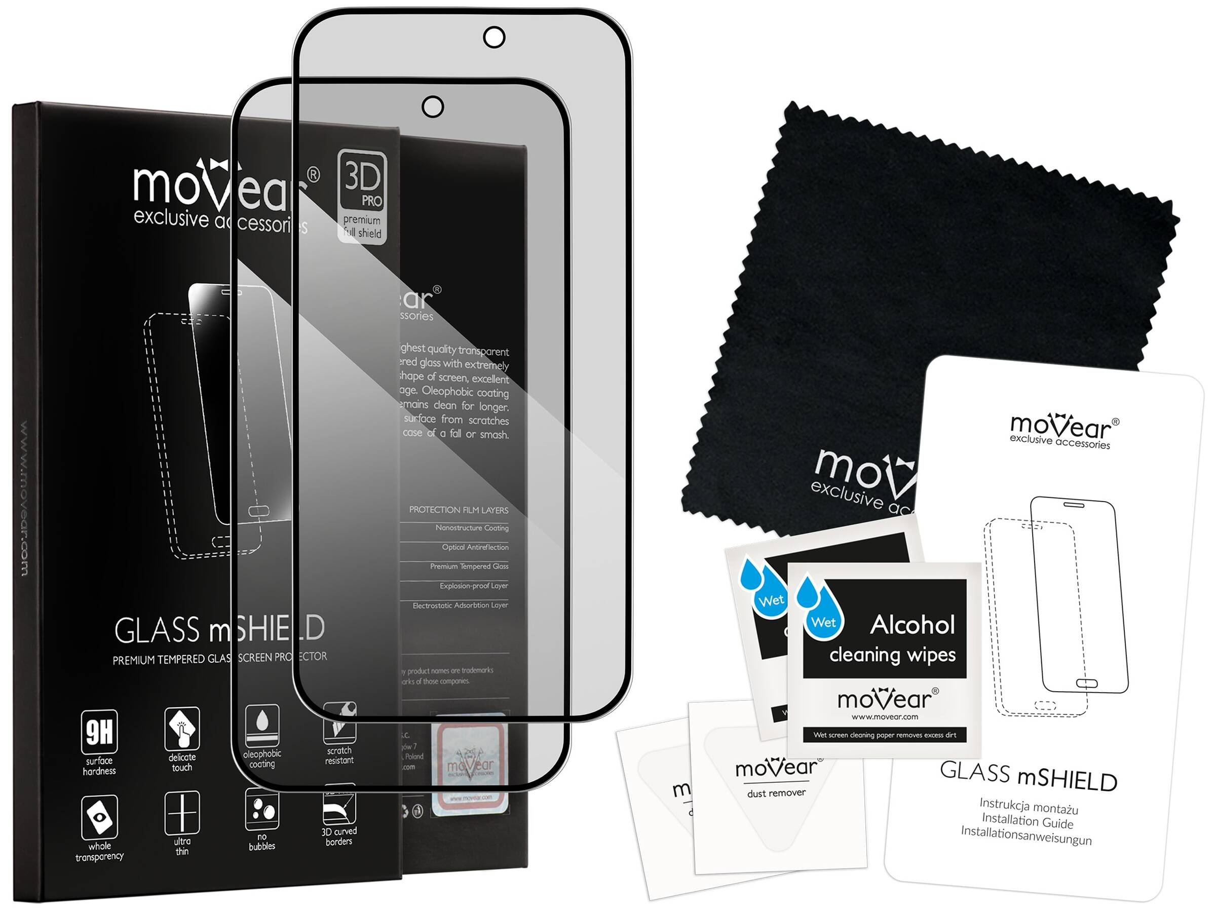 moVear GLASS mSHIELD 3D PRO privacySzkło hartowane na Apple iPhone 14 Pro Max (6.7"), na cały ekran, z filtrem prywatyzującym2 sztuki szkła w opakowaniu