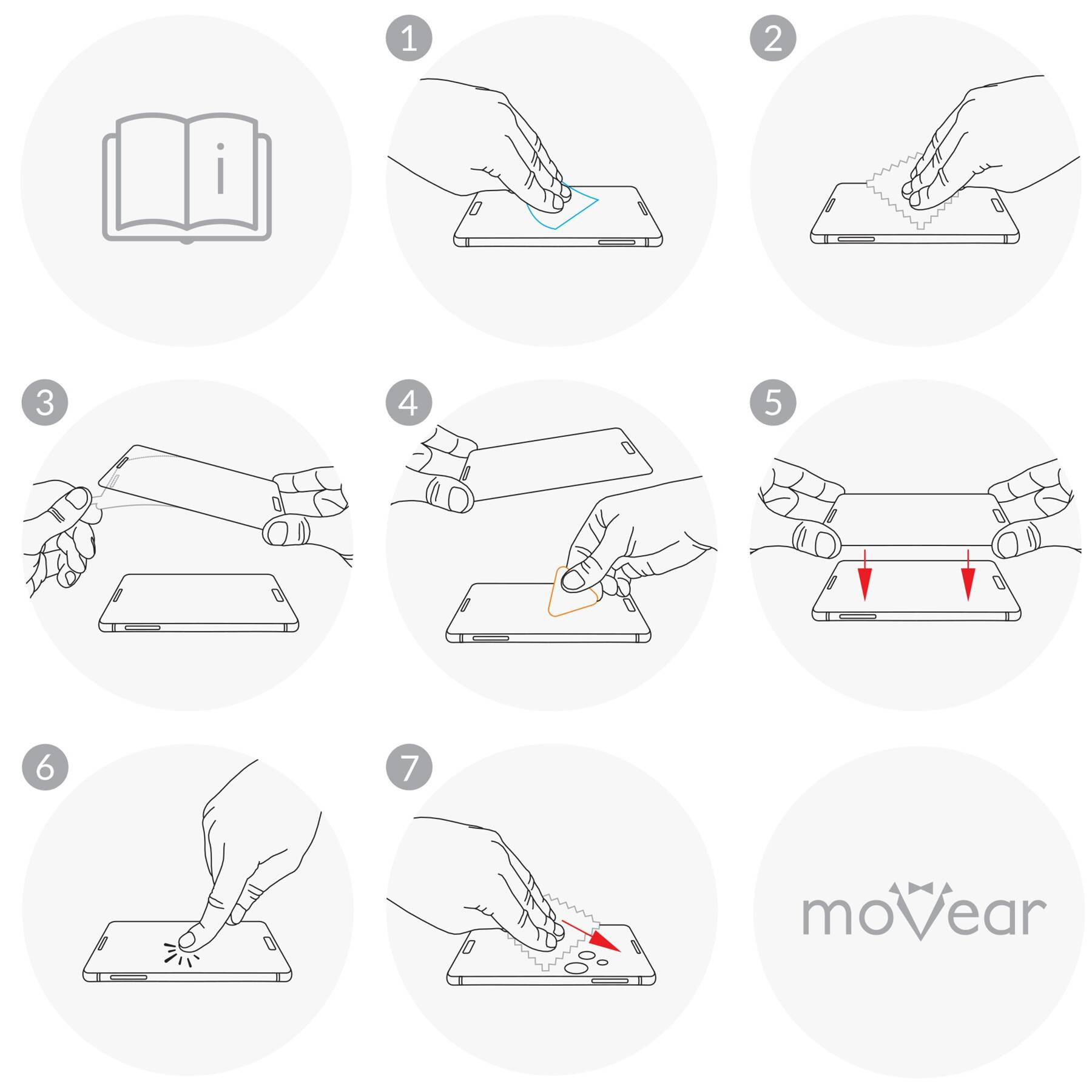 - Używając ściereczki z mikrofibry wypchnij spod szkła resztki powietrza w kierunku najbliższej krawędzi. Następnie dokładnie dociśnij jego brzegi i oczyść powierzchnię.
