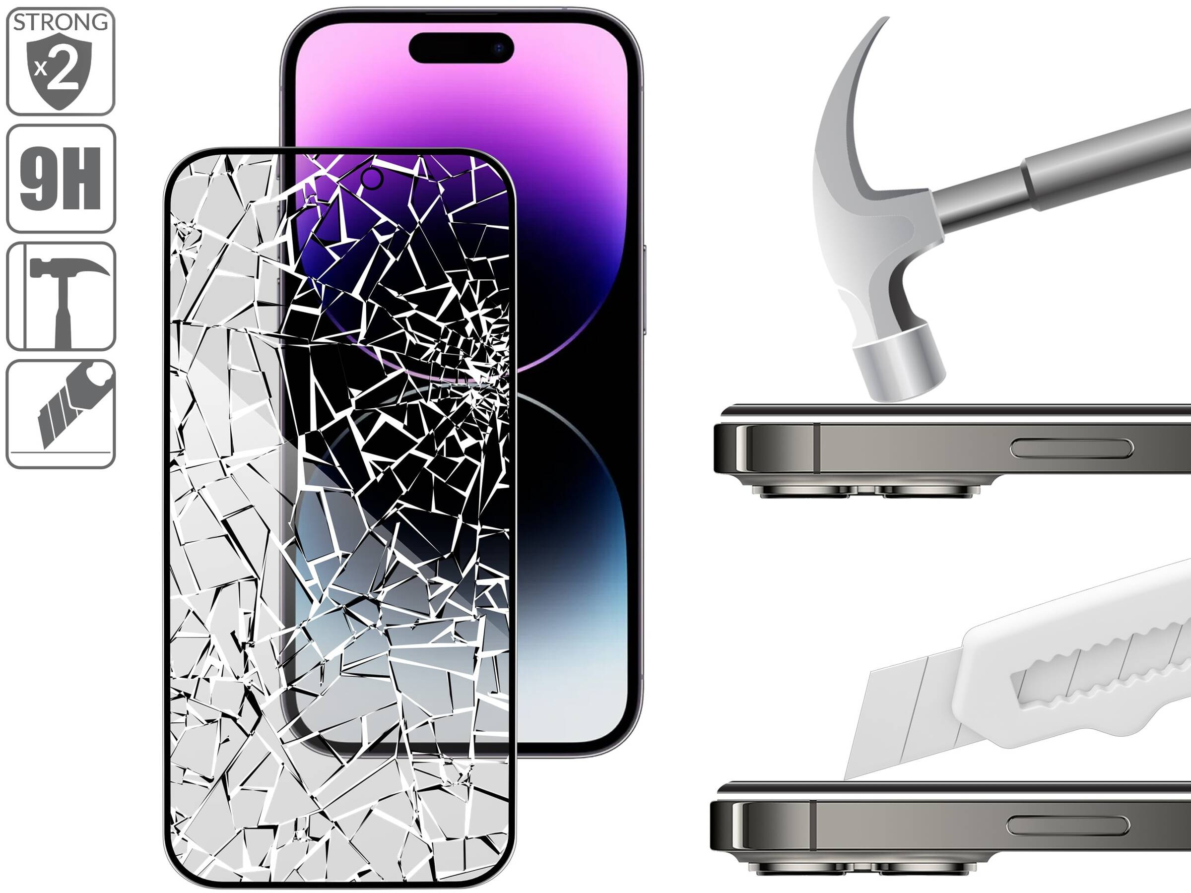 2x bardziej wytrzymałe od klasycznego szkła hartowanego dzięki wyjątkowemu procesowi hartowania. Połączenie pięciu warstw, zmniejsza podatność na pęknięcia i rozkruszenie. Pochłania energię uderzeń, zapewnia ochronę ekranu Apple iPhone 14 Pro Max i zmniejsza ryzyko uszkodzeń wyświetlacza podczas upadku smartfona.