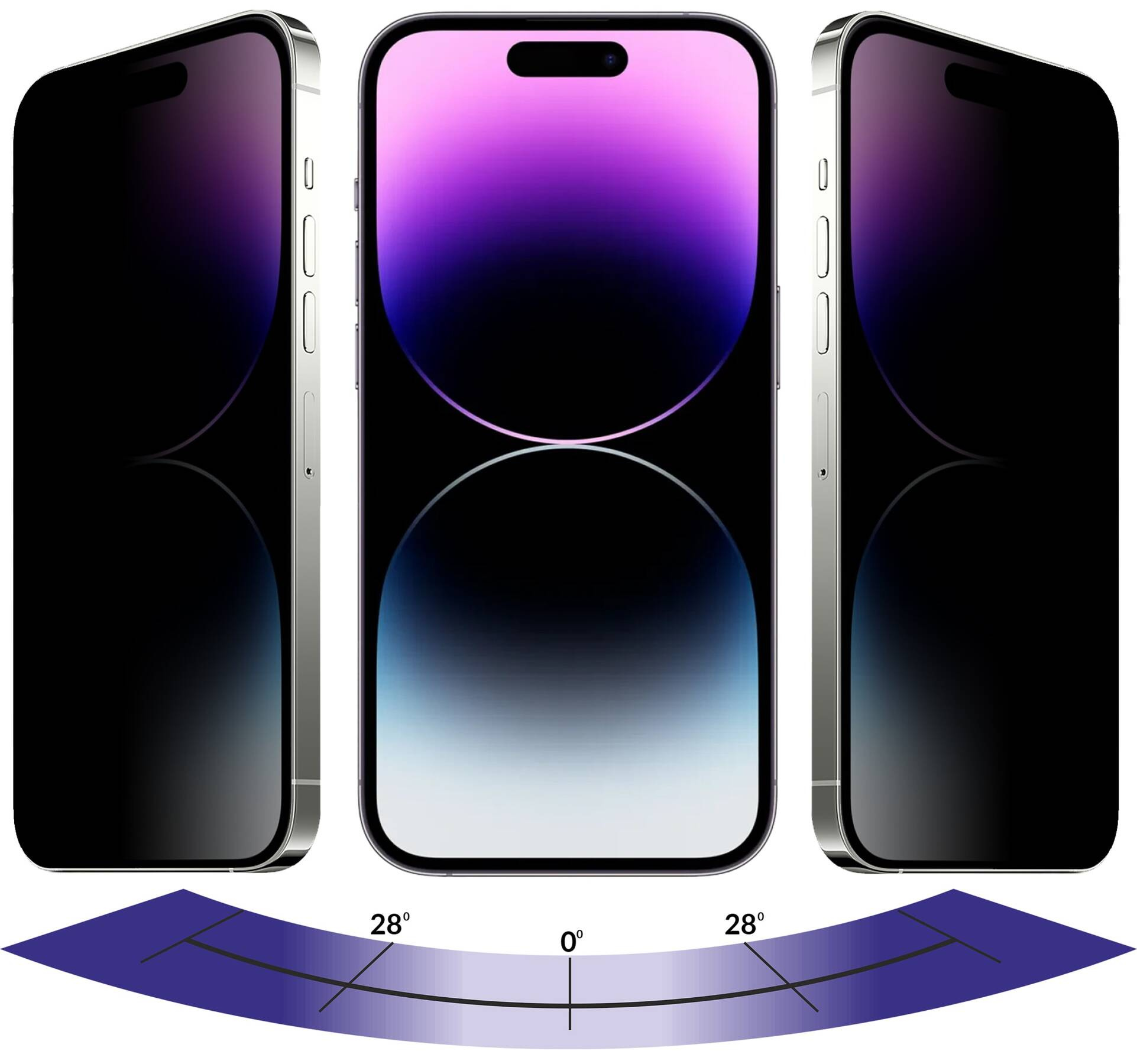 Zastosowany specjalny filtr polaryzacyjny P28™ zmniejsza kąt widzenia treści wyświetlanych na ekranie iPhone 14 Pro Max. Dzięki tej specjalnej technologii, osoby siedzące obok Ciebie nie będą mogły zobaczyć zawartości wyświetlacza Twojego telefonu. Szkło moVear privacy to prosta I skuteczna ochrona prywatności.