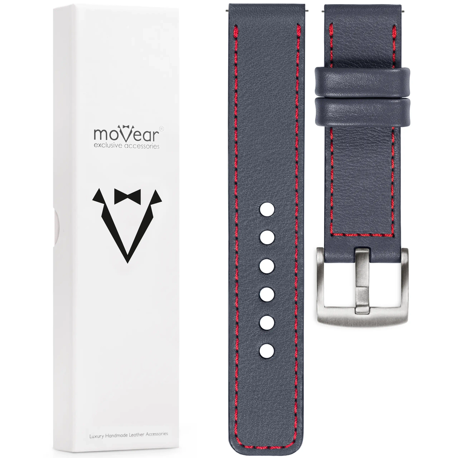- 1 szt. moVear Prestige C1 - Skórzany pasek szerokości mocowania 20mm, kolor paska Szary stalowy, czerwone przeszycie