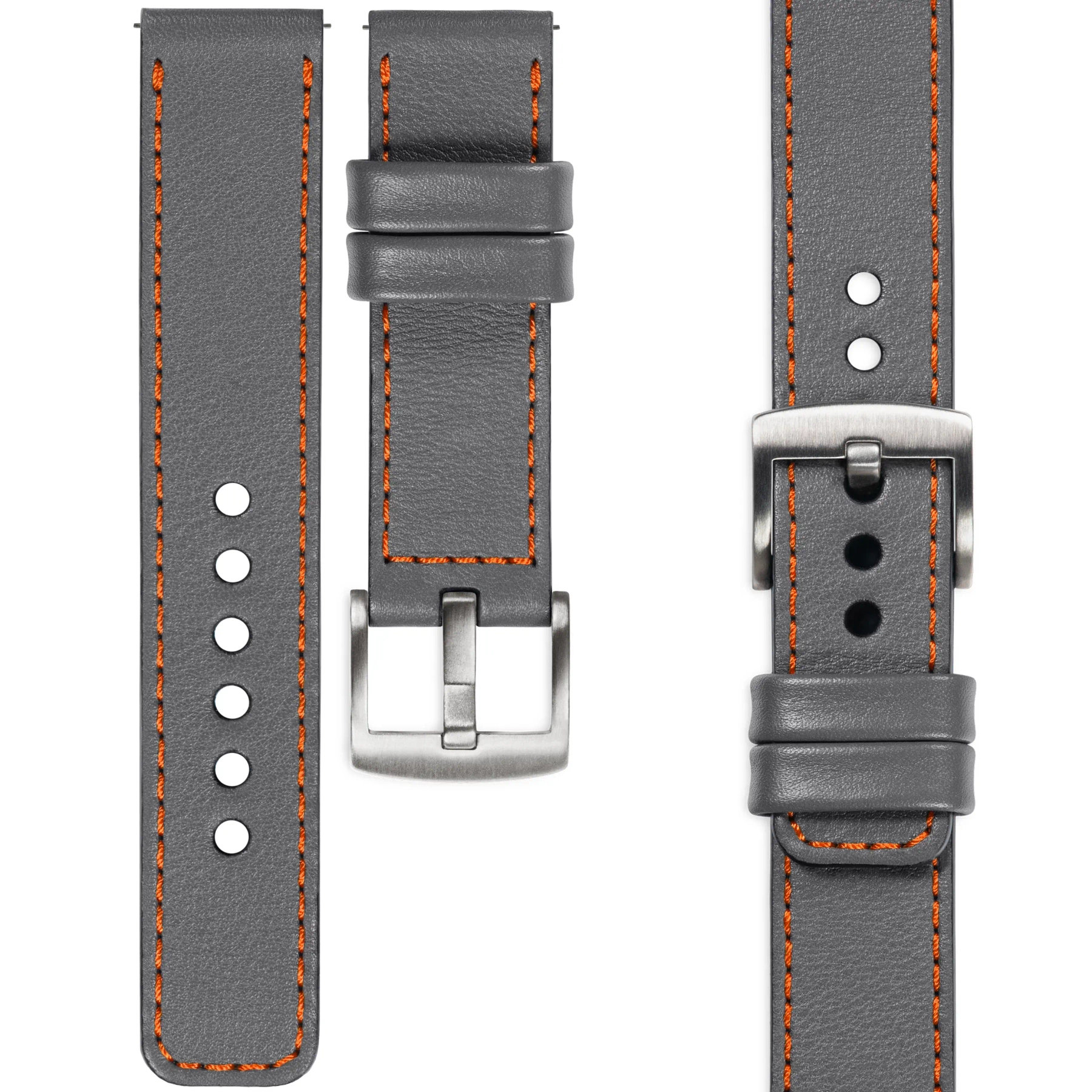 moVear Prestige C1 Skórzany pasek 18mm do zegarka / smartwatcha | Szary, eleganckie przeszycie kolor Ciemnopomarańczowy